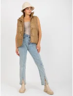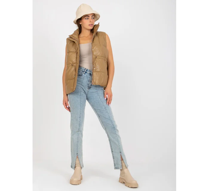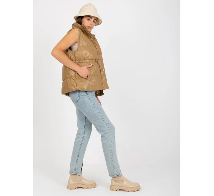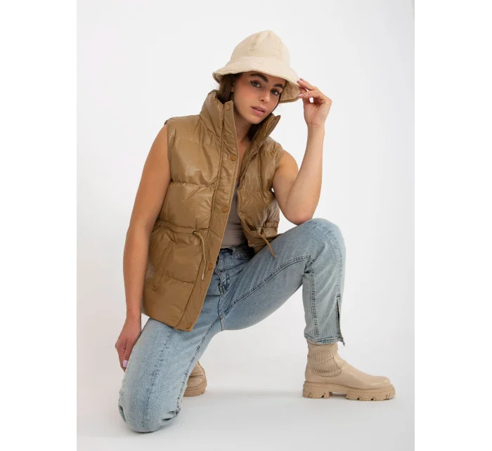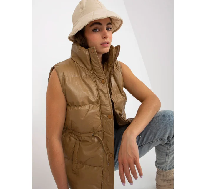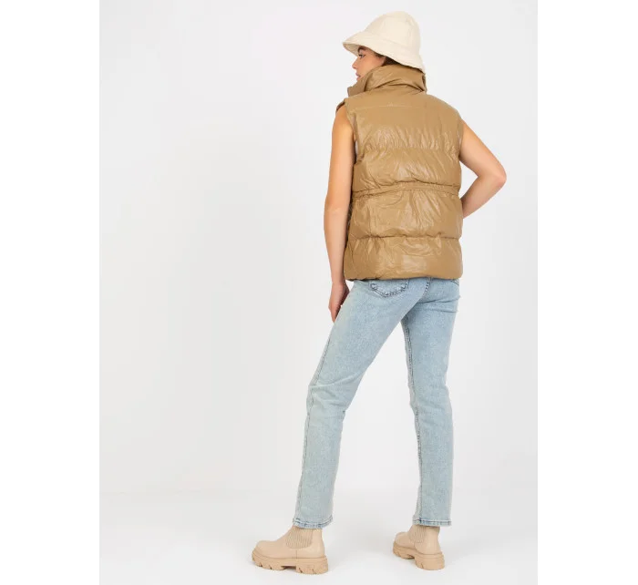 Vesta z velbloudího peří a ekokůže s prošíváním .