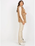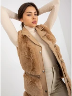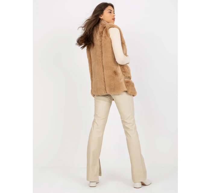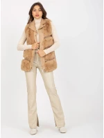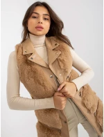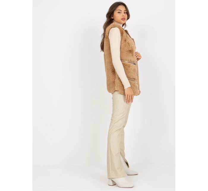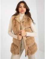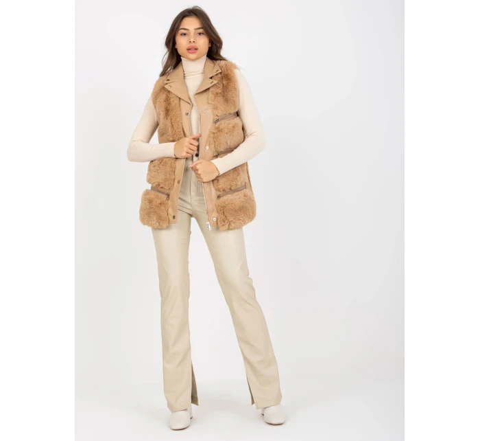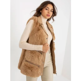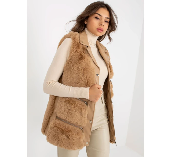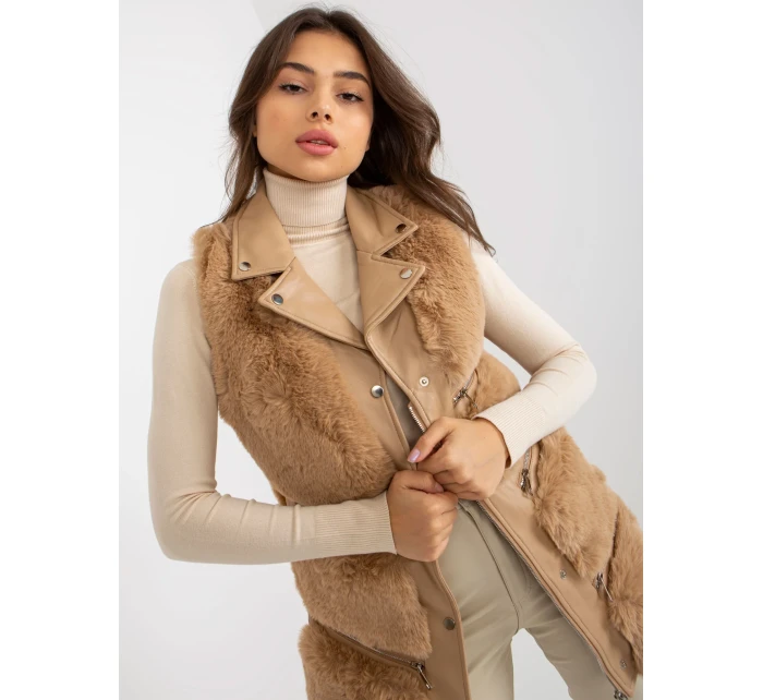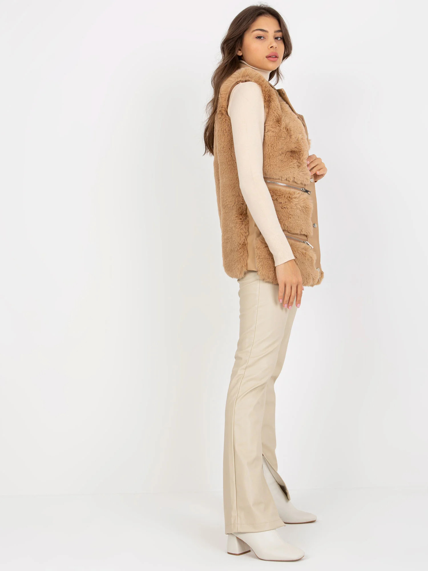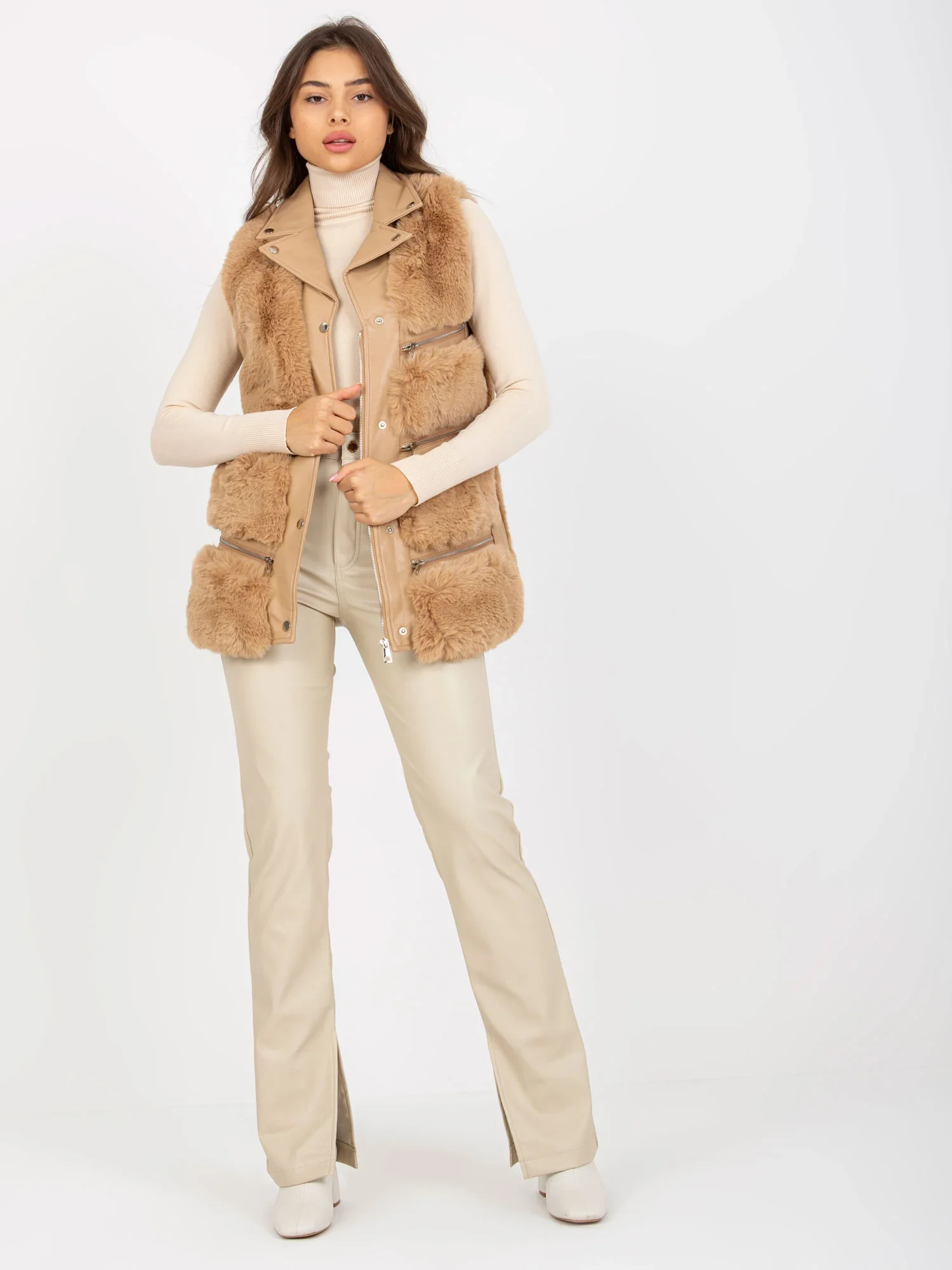Camelowo-beżowa damska kamizelka z eko skóry z futrem .
