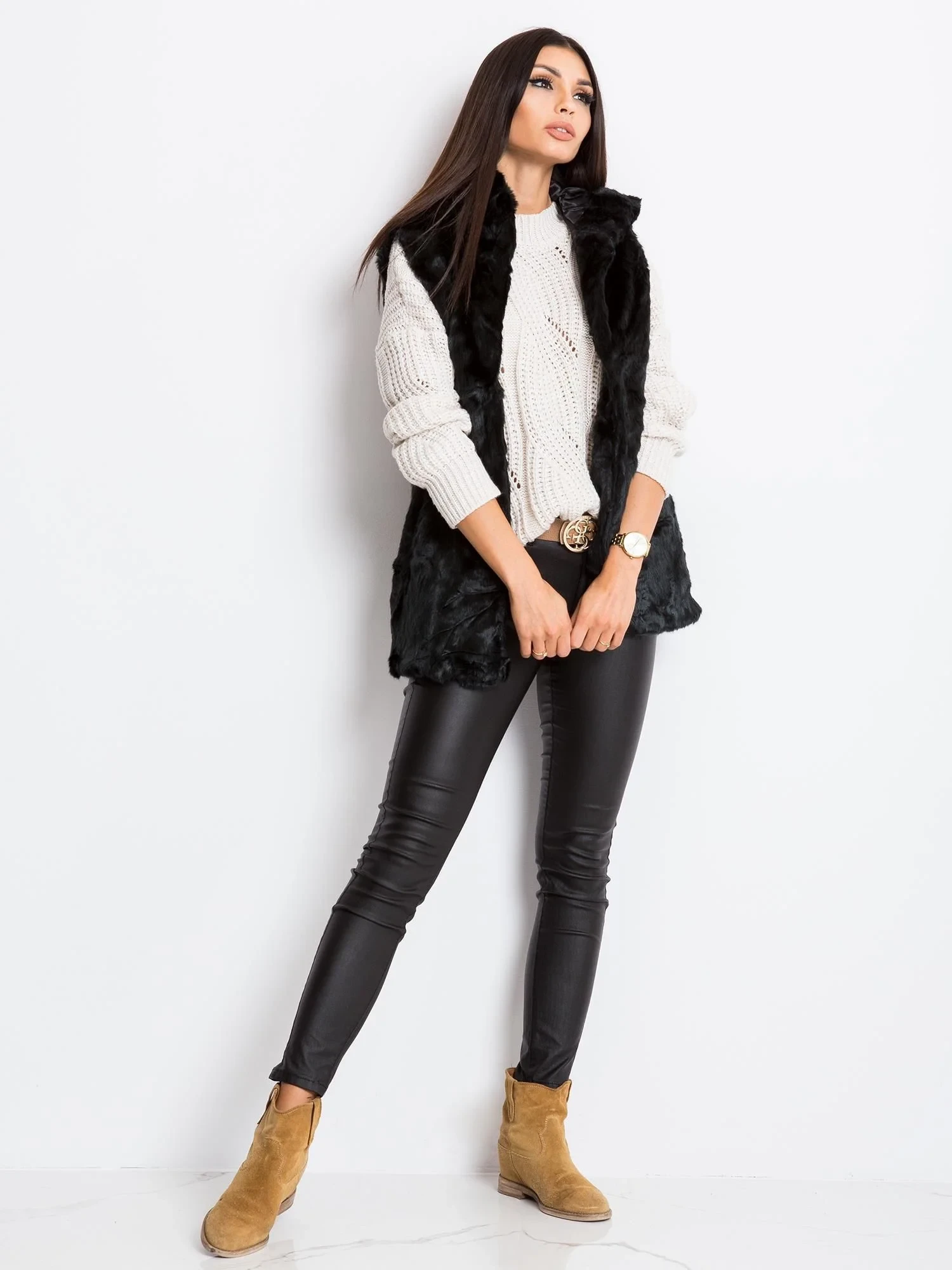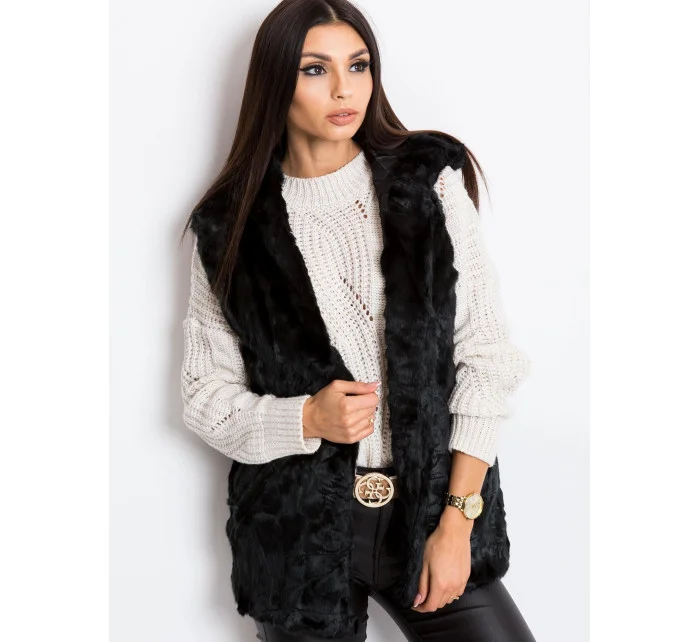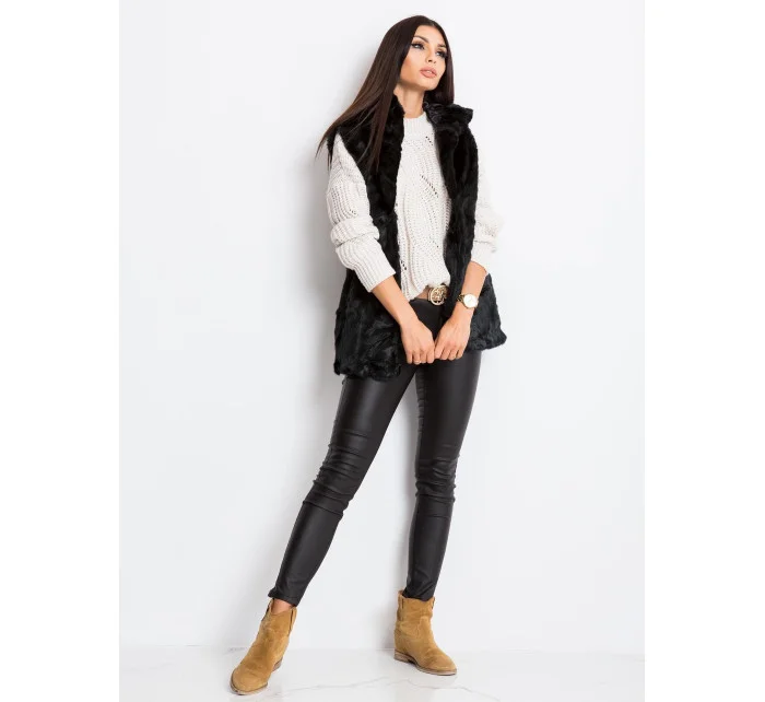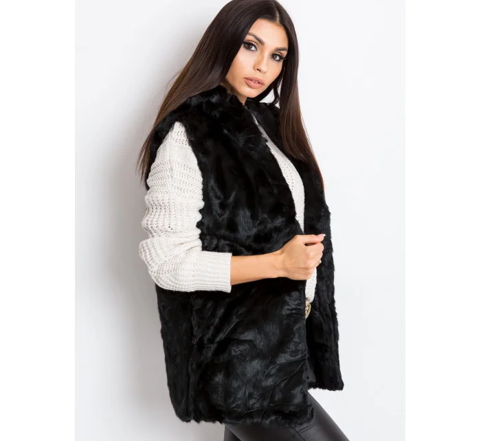 Černá vesta z umělé kožešiny.