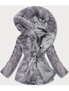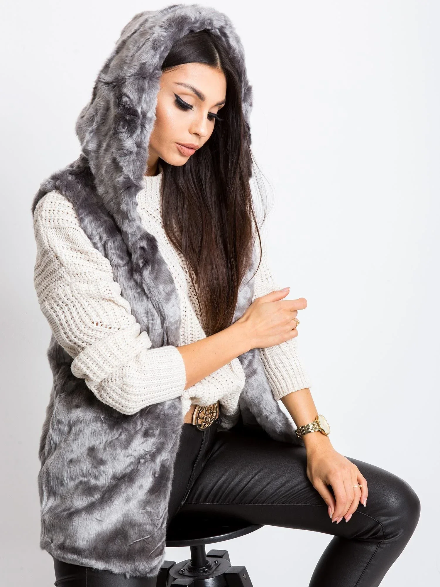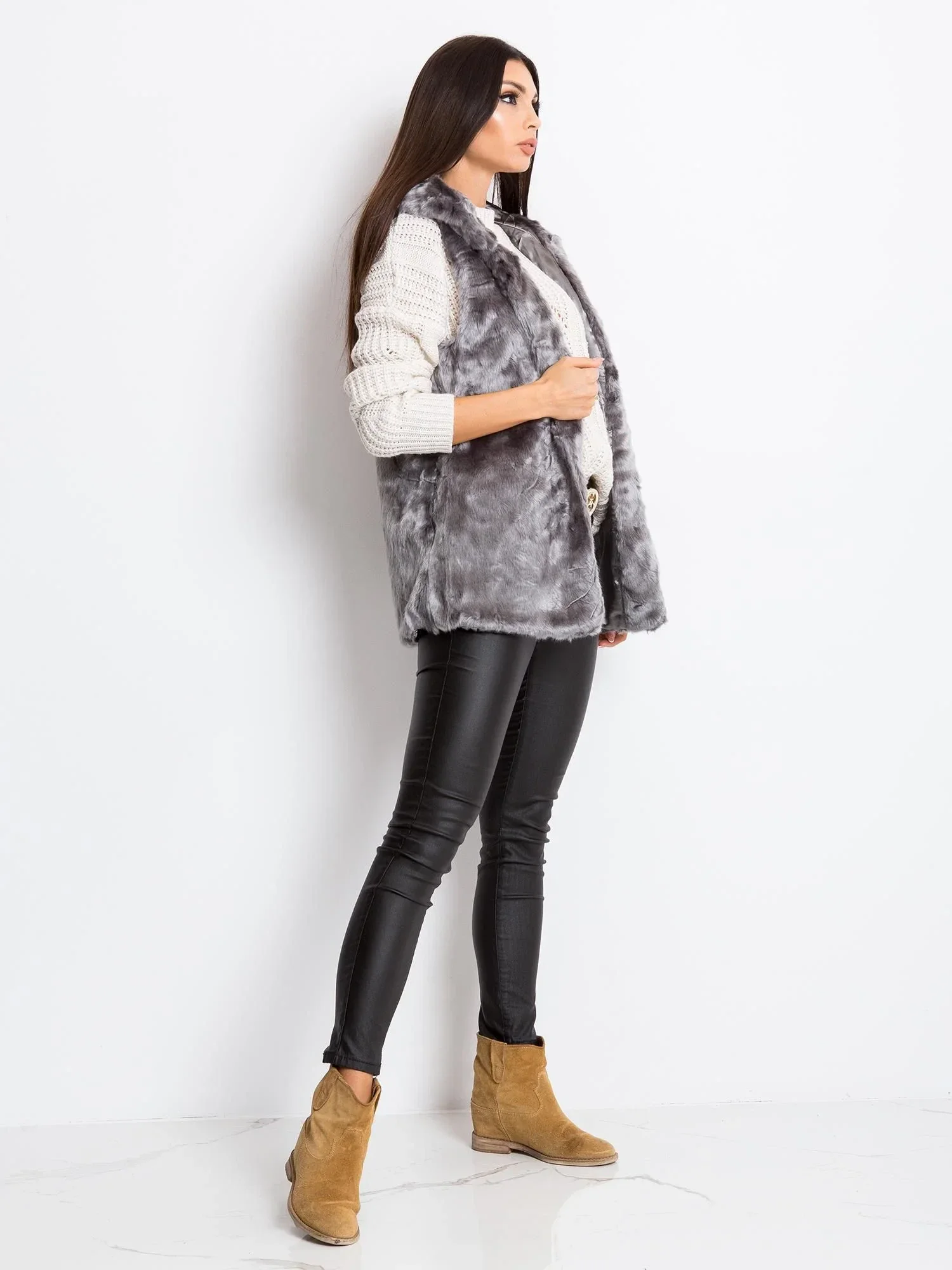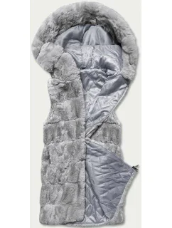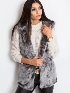 Šedá vesta z umělé kožešiny.