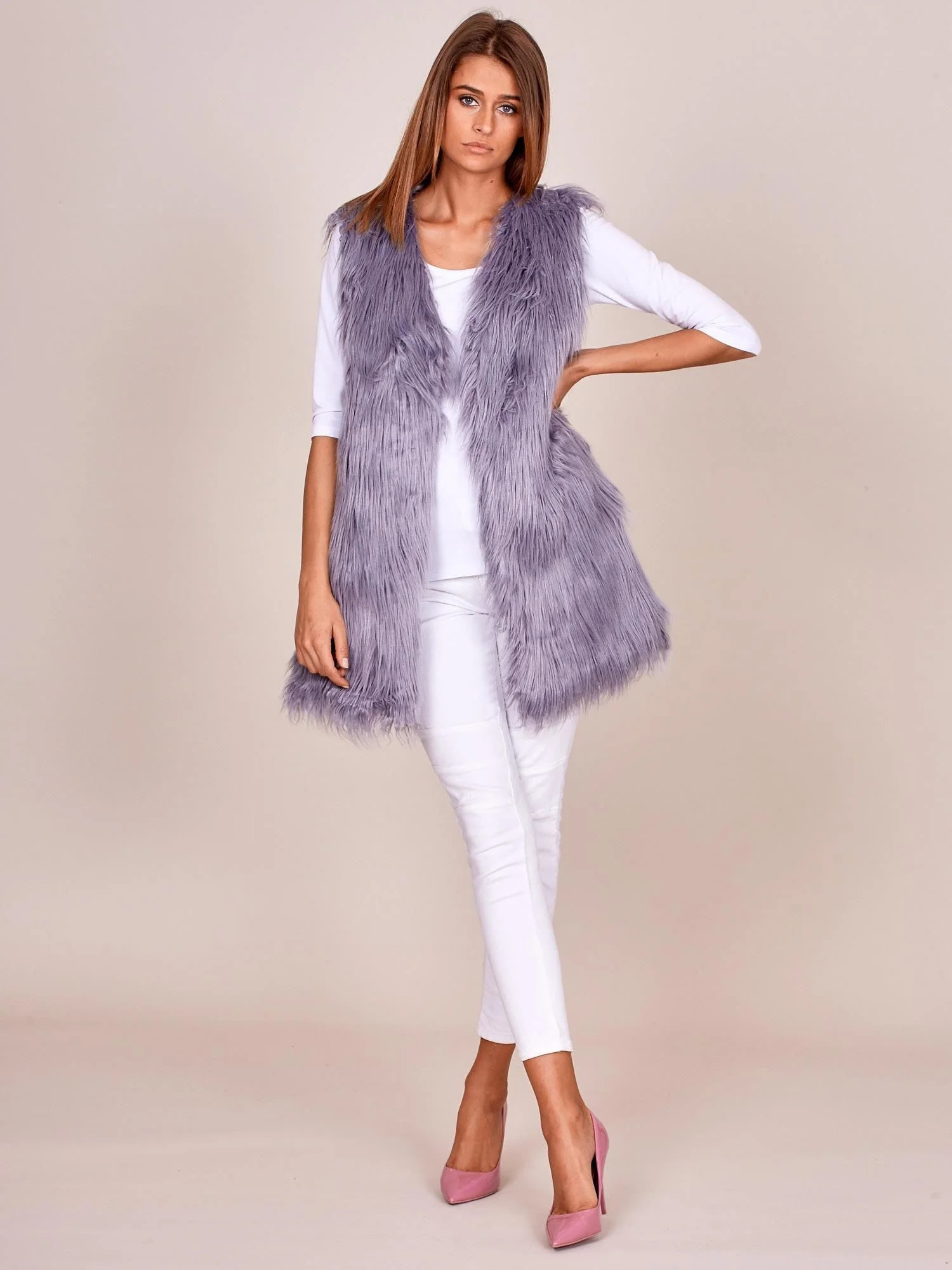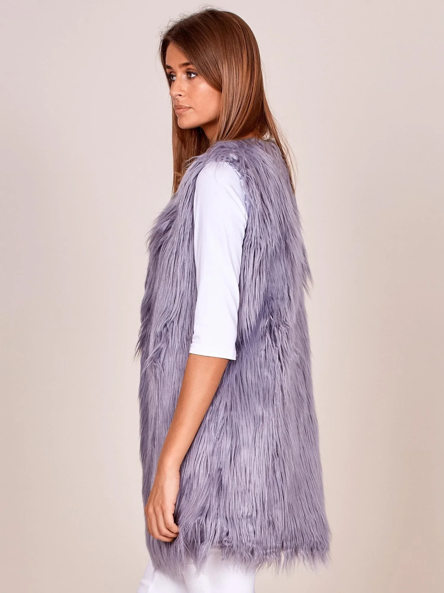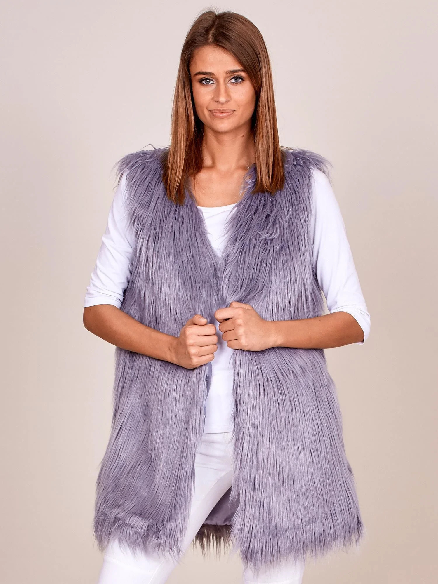 Dámská vesta s delšími vlasy šedá