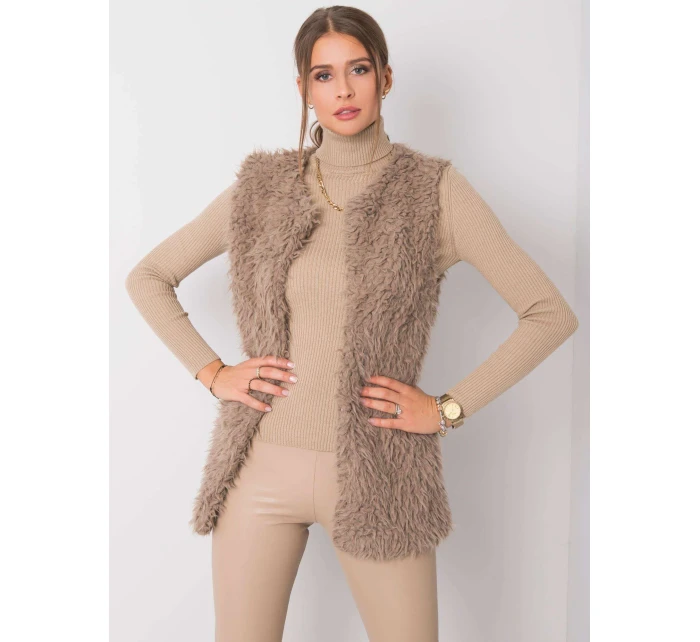 Tmavě béžová kožešinová vesta.