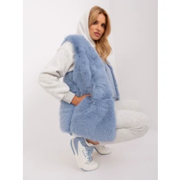 Modrá kožešinová vesta se zapínáním.