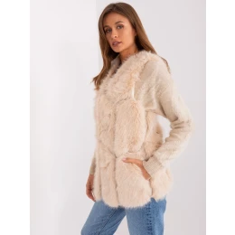 Béžová dámská kožešinová vesta s kapsami .