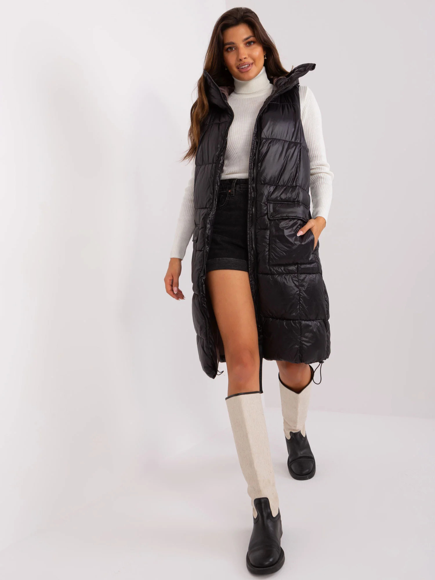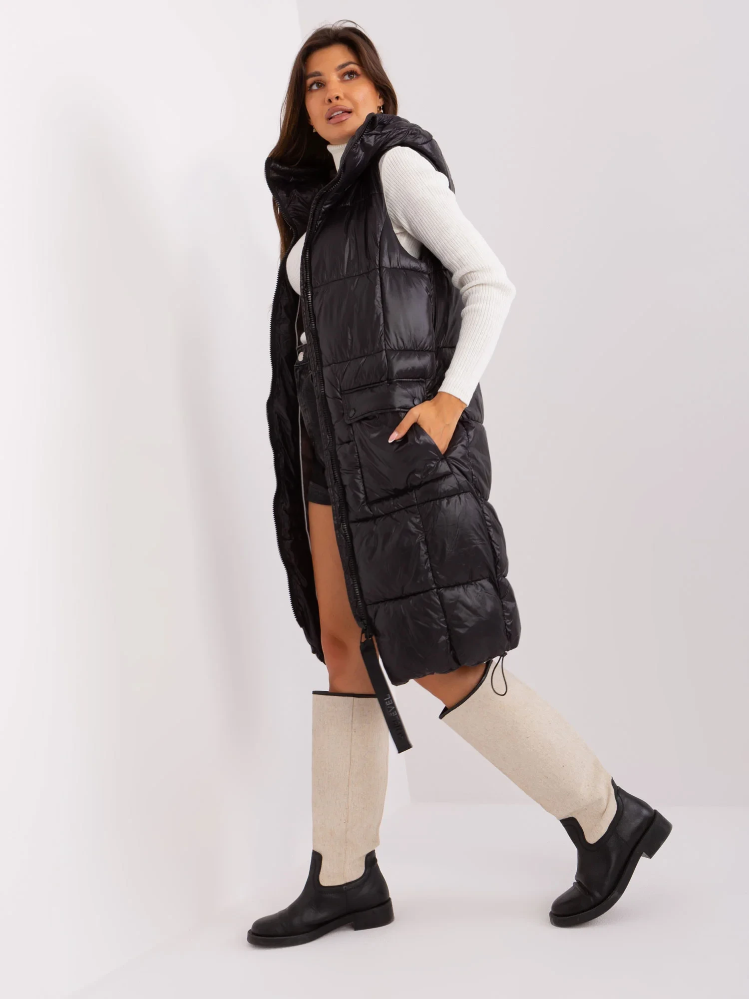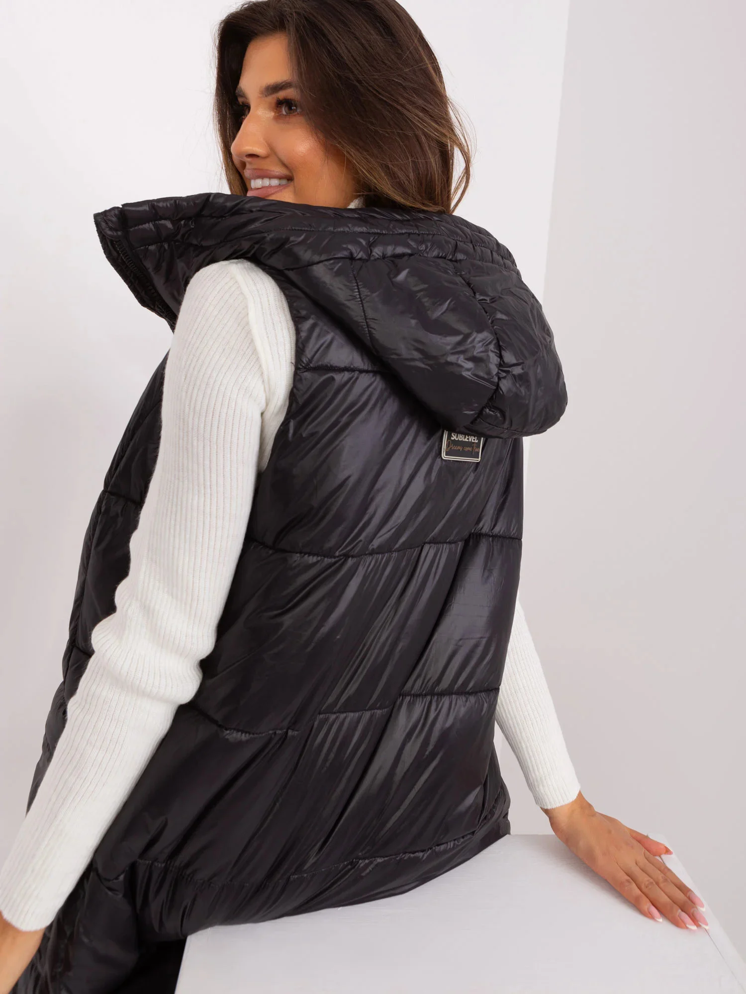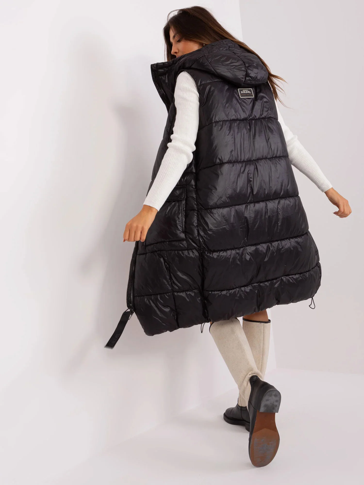 Černá dlouhá vesta s kapucí SUBLEVEL .