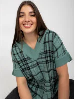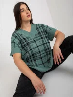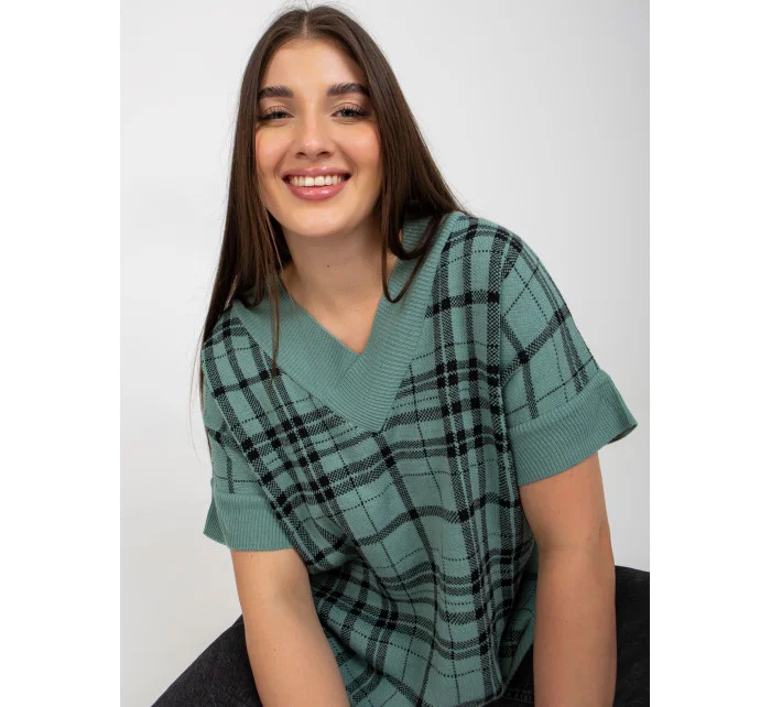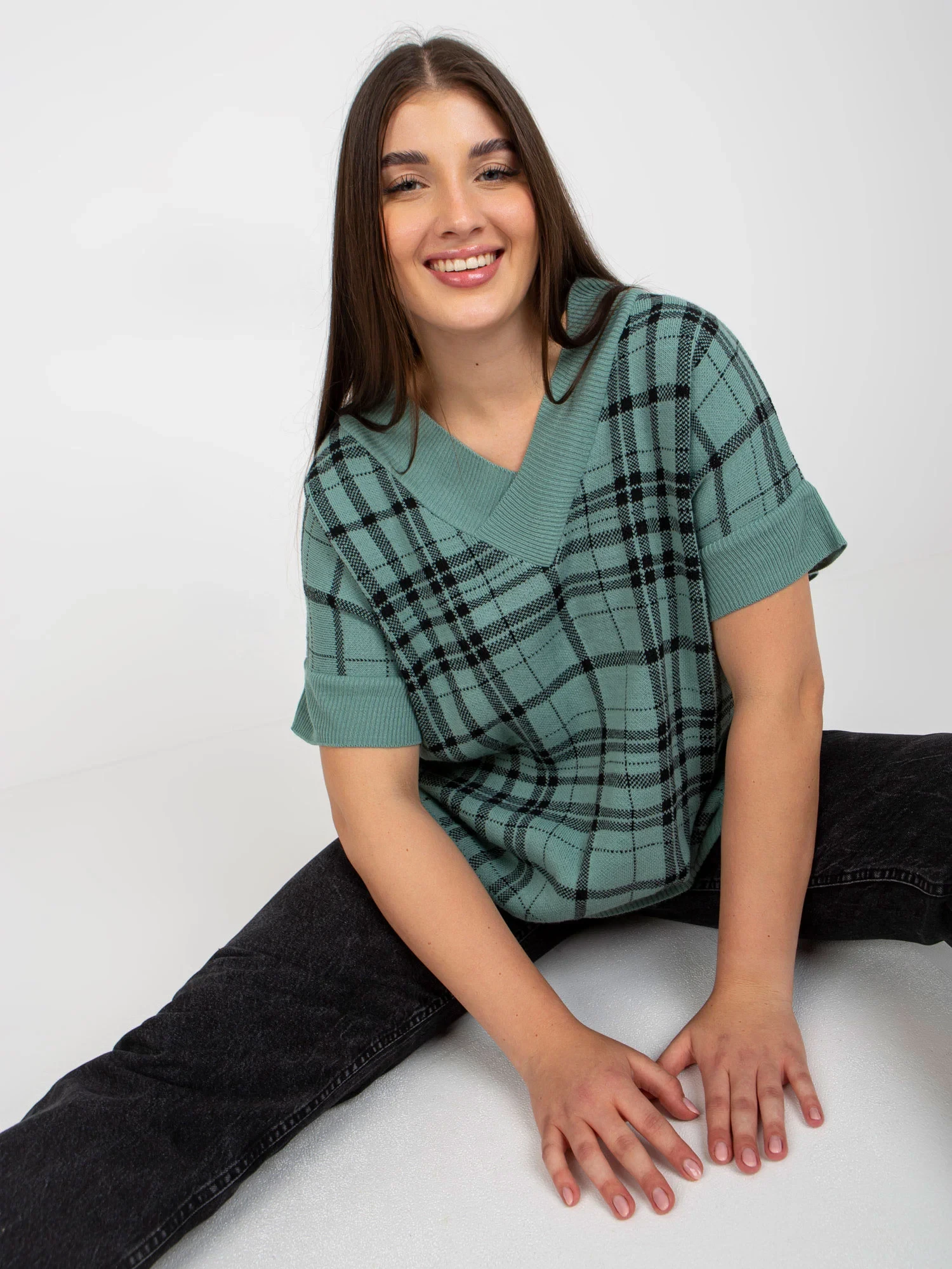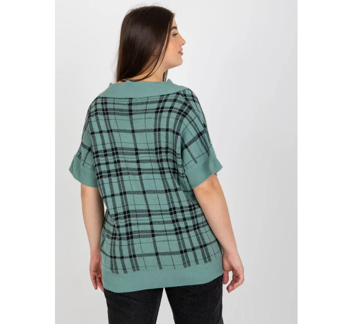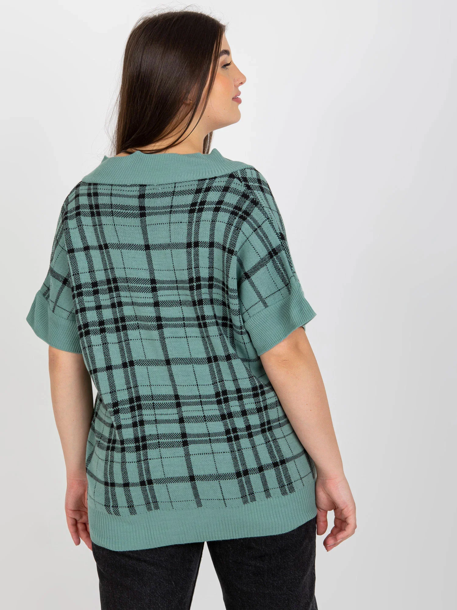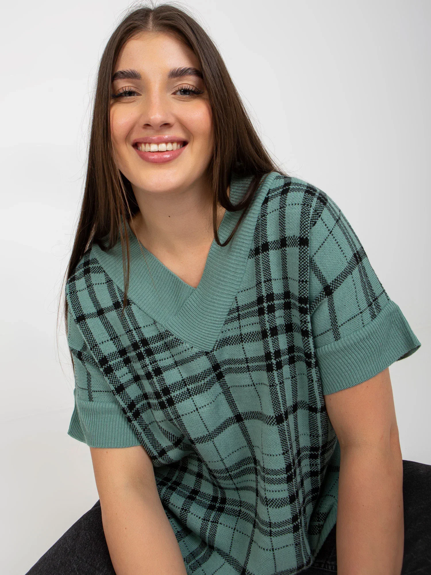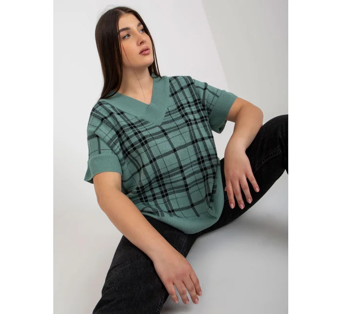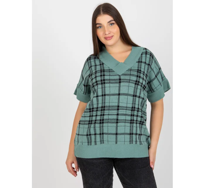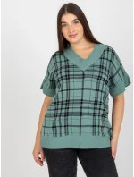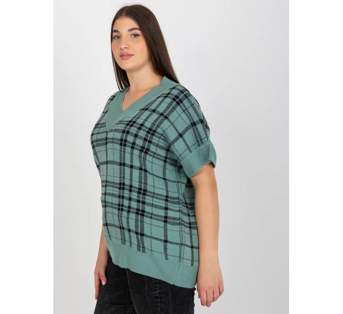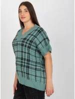 Červená pletená vesta plus size v kostkovaném provedení .