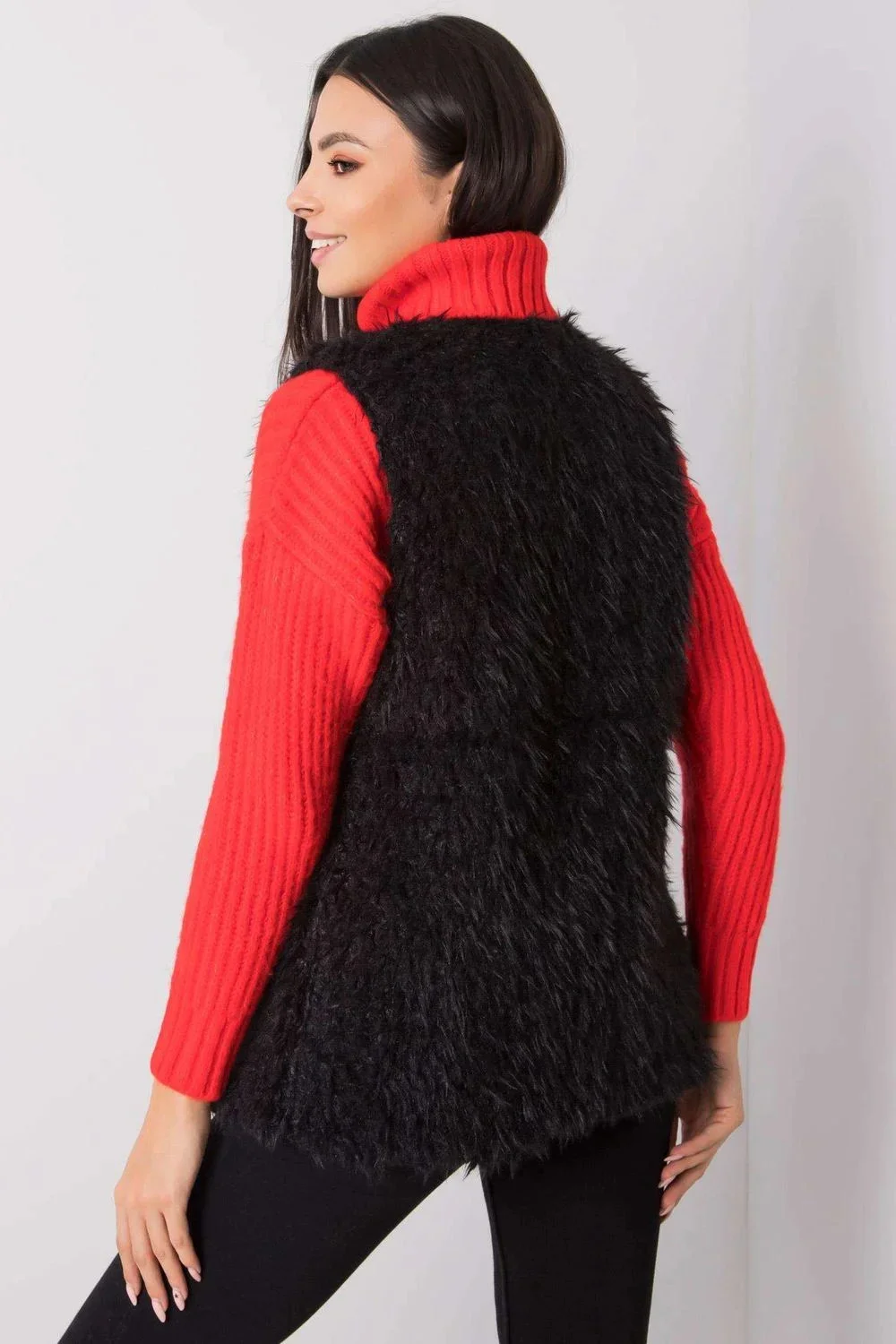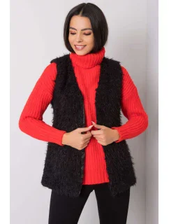 Černá kožešinová vesta se zapínáním na háčky a oka a podšívkou.