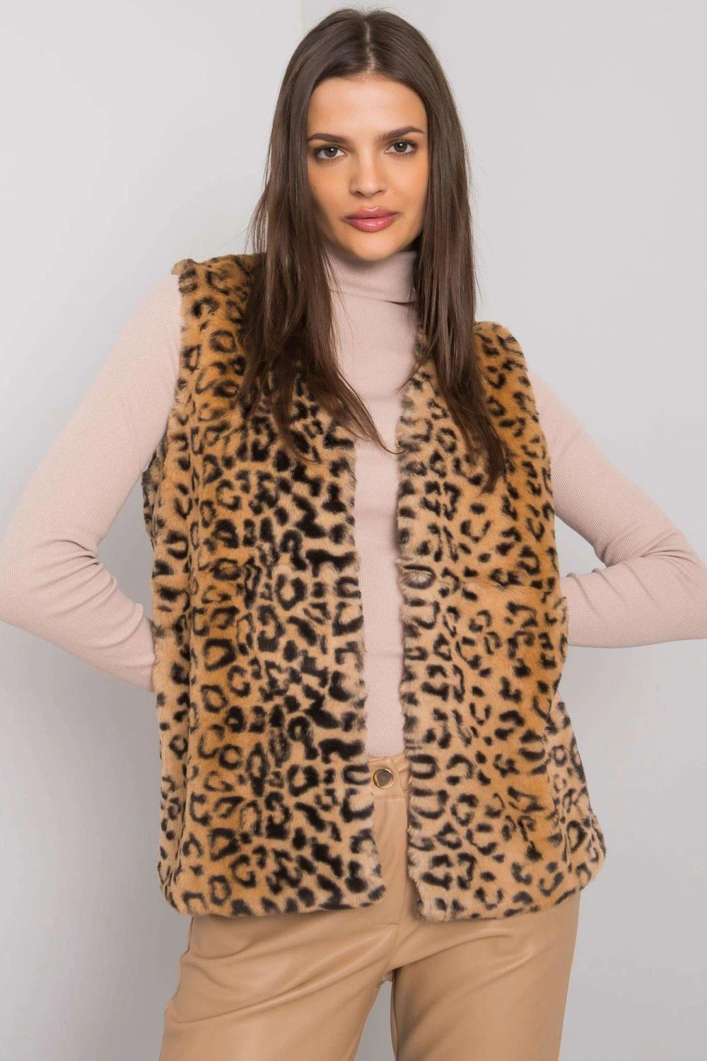 Kožešinová vesta se zvířecím potiskem a zapínáním na háčky a oči. Vesta s podšívkou.
