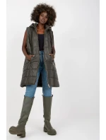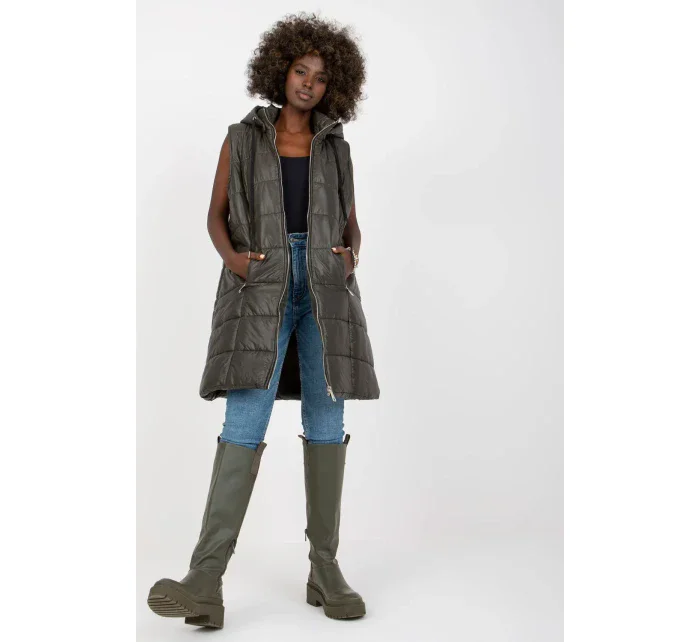 Prošívaná péřová vesta prodlouženého střihu se zapínáním na zip. Vesta s odnímatelnou kapucí, kapsy na zip na přední straně. Plně podšité.