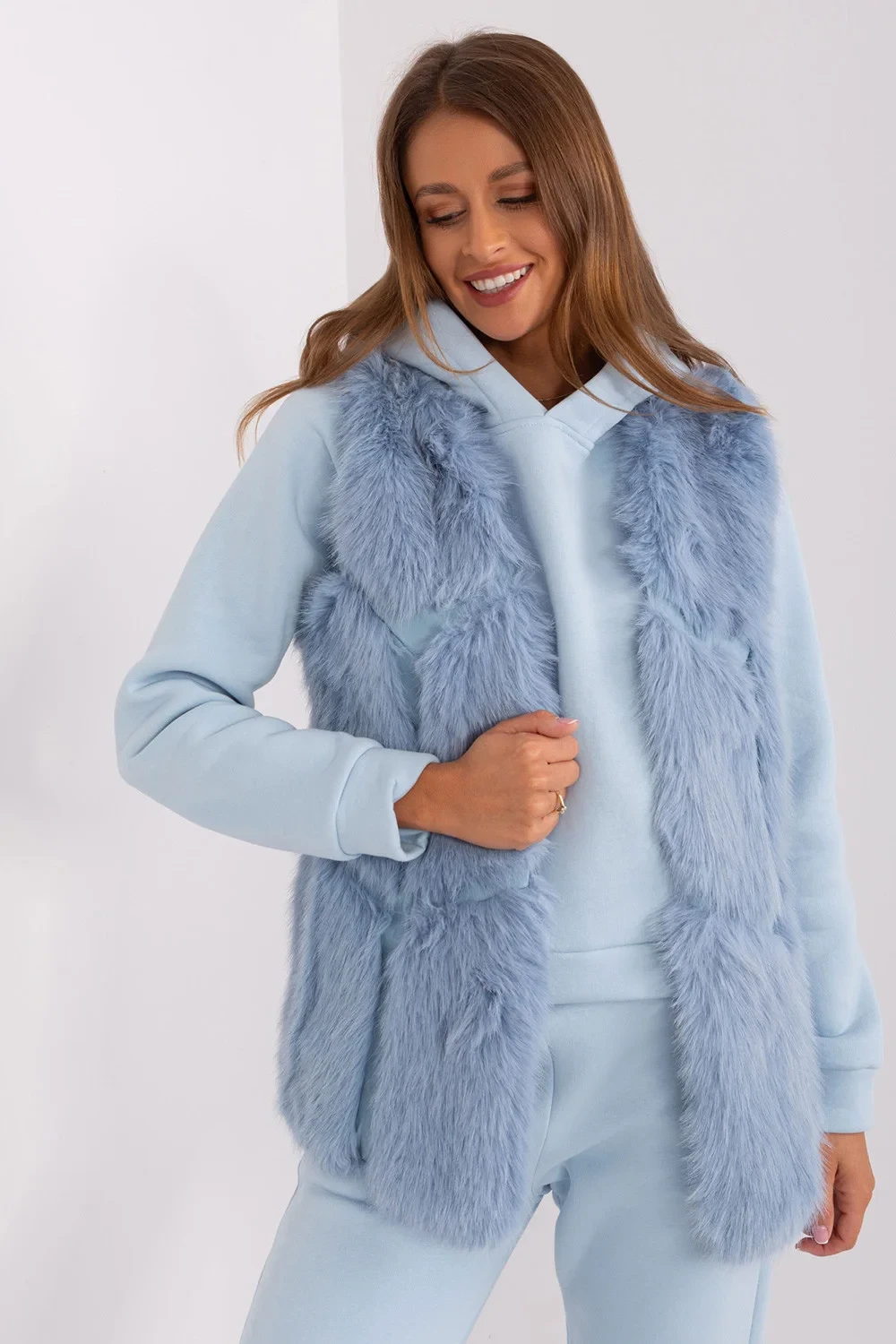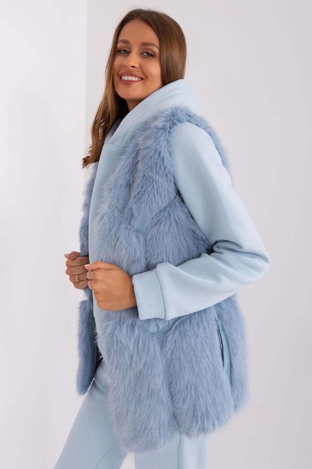 Tato kožešinová vesta je dokonalým doplňkem vašeho každodenního šatníku. Je vyrobena z měkkého a na dotek příjemného polyesteru a poskytuje pohodlné nošení během podzimní/zimní/jarní sezóny. Délka vesty je standardní, což z ní činí velmi univerzální kousek oblečení. Má praktické nakládané kapsy, které jí dodávají na praktičnosti. Vesta není zateplená, takže je ideální pro každodenní příležitosti. Zapínání na háčky a smyčky je jednoduchým a elegantním řešením. Vesta nemá kapuci, což jí dodává na lehkosti a činí z ní ideální volbu pro různé příležitosti, ať už do práce nebo na běžné nošení. Navíc je podšitá pro pohodlné nošení. Je to elegantní kousek do vašeho šatníku, který dodá charakter každému oblečení.