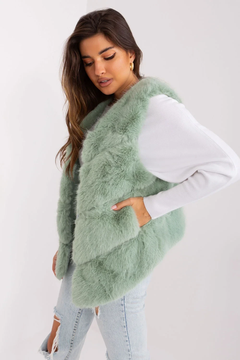 Tato kožešinová vesta je dokonalým doplňkem pro každodenní nošení i zvláštní příležitosti. Je vyrobena z vysoce kvalitního polyesteru a poskytuje příjemně měkký a hřejivý pocit. Její standardní délka se hodí k široké škále stylizací a rukávy zajišťují volnost pohybu. Vesta je vybavena praktickými kapsami, které jí dodávají funkčnost a styl. Díky vnitřní podšívce je tato vesta ideální pro chladnější dny, kdy poskytuje pohodlí a teplo. Je ideální volbou pro neformální příležitosti, kdy chcete svému outfitu dodat trochu elegance. Vesta se zapíná na háčky a očka, snadno se obléká a svléká, což z ní činí praktický kousek do vašeho šatníku. Zařaďte ji do své sbírky a dodejte eleganci a hřejivost svým neformálním a příležitostným outfitům.