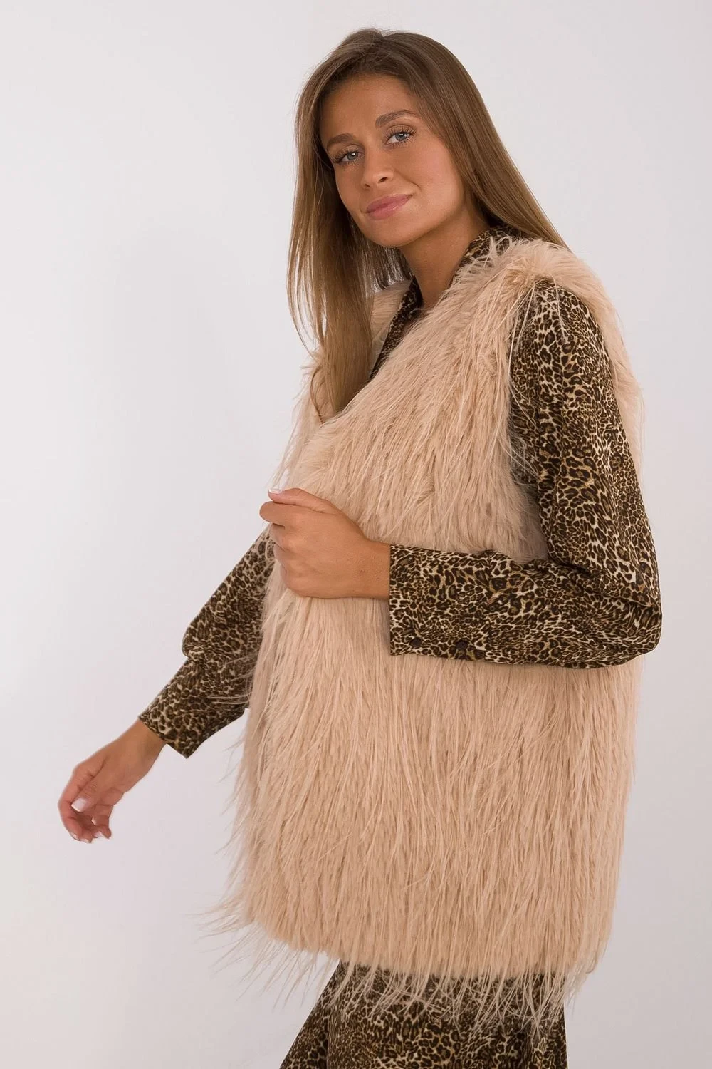 Zde je kožešinový vestička v casual stylu, ideální na každodenní příležitosti. Vyrobený z 100% polyesteru, nabízí stylový vzhled a pohodlí nošení. Vestička nemá kapuci ani izolaci, což ji činí ideálním doplňkem pro vrstvené stylizace v chladnějších dnech. Vybavena zapínáním na háček a podšívkou, poskytuje pohodlí a skvělé přizpůsobení. Je to skvělá volba pro ženy, které si cení elegance a pohodlí každý den.