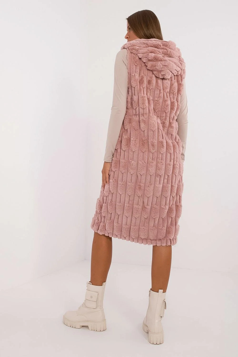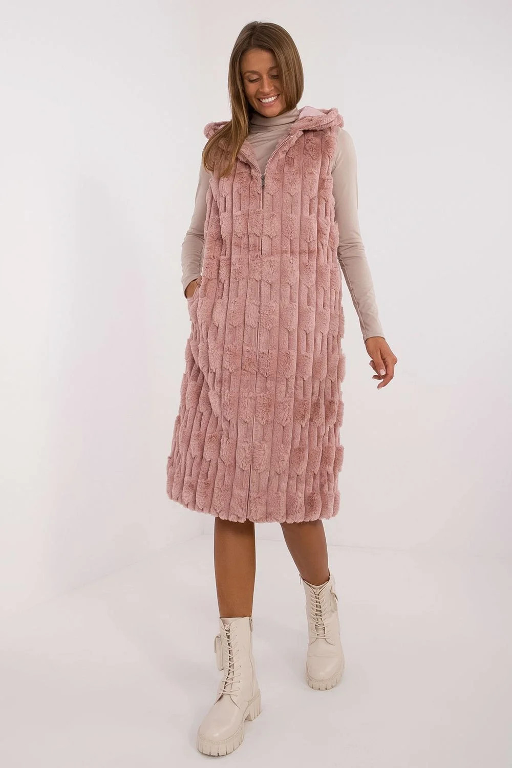 Vytvořená s ohledem na ženy, kteří oceňují eleganci a pohodlí, tato kožíšková vesta je výjimečným kouskem vašeho šatníku. Vesta dokonale spojuje eleganci a pohodlí. Její vznešený design ji činí ideální pro formální situace, do práce nebo na důležité obchodní schůzky. Díky svému vkusnému charakteru se vesta skvěle hodí jako součást pracovního oděvu a na významné příležitosti, dodávající vaší stylizaci výjimečný charakter. Vesta je vyrobena z odolného a snadno udržovatelného polyesteru. To je materiál, který nejen vypadá luxusně, ale také poskytuje pohodlí nošení. Kožíšková vesta je určena na chladnější dny, skvěle chrání před zimou a zároveň dodává eleganci každému outfitu. Vesta je vybavena jemnou, ale účinnou izolací, což ji činí nejen módním doplňkem, ale také funkčním prvkem zimního šatníku. Délka vesty sahající před koleno dodává celkovému vzhledu elegantní vzhled a zároveň zdůrazňuje jemnost střihu. Dalším prvkem v podobě kapuce dodává vestě trochu neformálnosti a chrání zároveň před zimou a větrem. Pohodlné zapínání na zip umožňuje rychlé a snadné přizpůsobení vesty měnícím se povětrnostním podmínkám. Funkční vkládané kapsy jsou praktickým doplňkem, umožňujícím uložení nejnutnějších drobností. Tato kožíšková vesta je nejen módním prvkem šatníku, ale také praktickou volbou na zimní dny, která umožní cítit se elegantně a výjimečně v každé situaci.