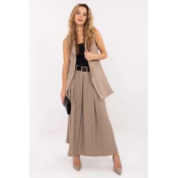 Elegantní, dlouhá dámská vesta bez zapínání je stylovou základnou pro mnoho outfitů. Vyrobena z vysoce kvalitního materiálu z kombinace polyesteru a elastanu, poskytuje pohodlí a elegantní vzhled. Model je vybaven límci a rozparky po stranách, které dodávají postavě lehkost a volnost pohybu. Hladká látka zdůrazňuje univerzální charakter vesty, a podšívka zaručuje estetické provedení. Bezrukávkový střih se skvěle kombinuje jak s košilí, halenkou, tak i s tenkým rolákem. Ideální na mnoho příležitostí, hodí se do elegantních outfitů na návštěvu, do práce a do elegantního každodenního stylu.