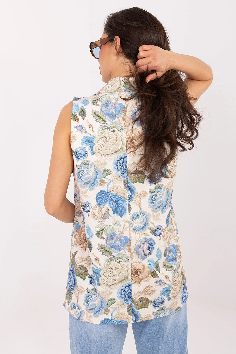 Dámský květinový vest je elegantním prvkem šatníku, který se skvěle hodí jak do každodenního nošení do práce, tak i na více formální příležitosti nebo večírky. Kombinace klasického střihu s ženským květinovým motivem dodává outfitu jedinečný charakter. Model je vyroben z kombinace polyesteru a elastanu, co zaručuje pohodlí nošení, lehkost a skvělé přizpůsobení se postavě. Standardní délka vesty se skvěle hodí jak k kalhotám, tak i ke sukním. Vest má sklápěcí límce a imitaci kapes, které zdůrazňují její elegantní styl. Dvojřadé zapínání na knoflíky dodává celku eleganci a nadčasový vzhled, zároveň tvaruje postavu. Ideální volba pro ženy, které ocení eleganci, pohodlí a módní design s decentním květinovým akcentem.