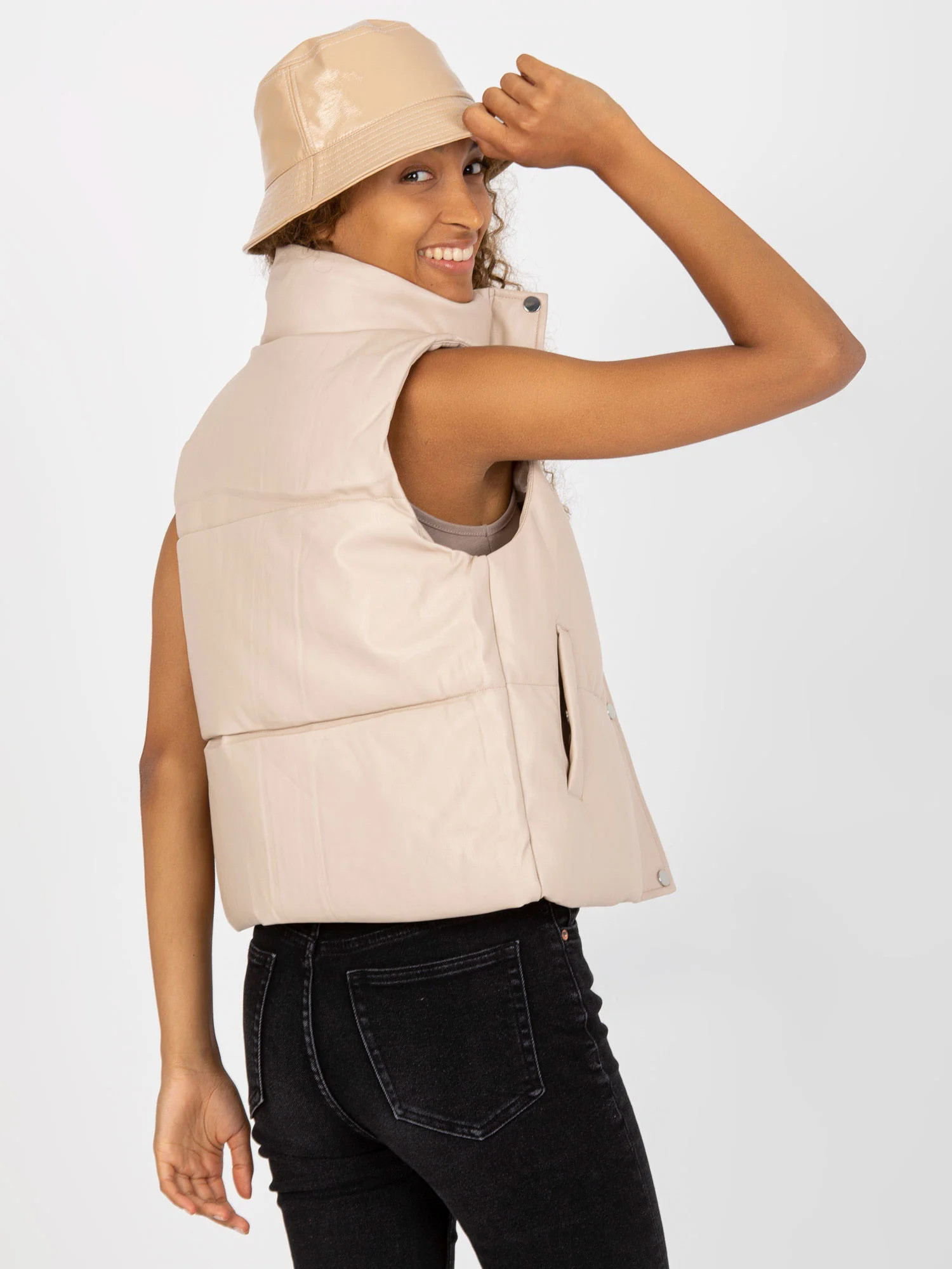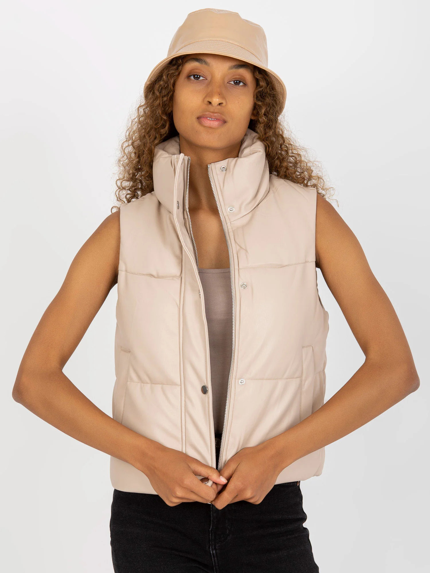 Světle béžová prošívaná vesta z ekokůže .