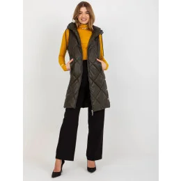 Khaki dlouhá prošívaná vesta z ekokůže .