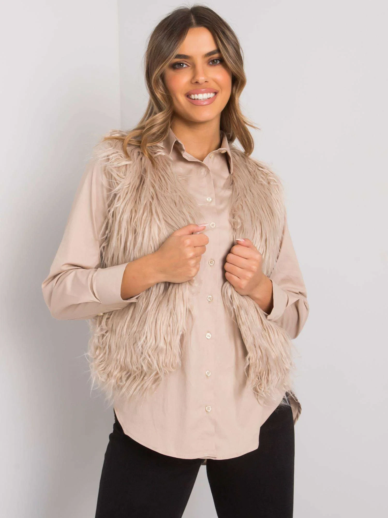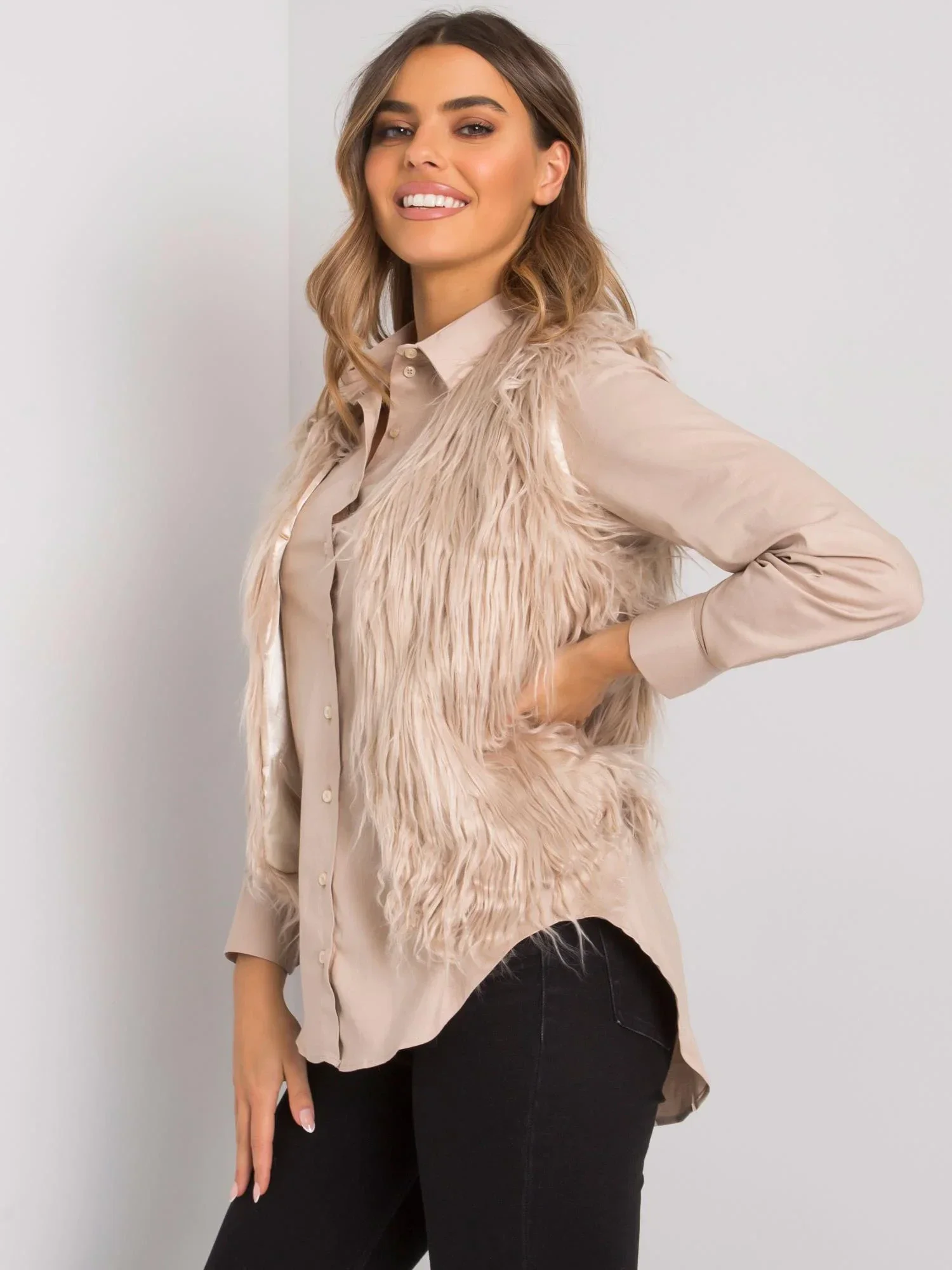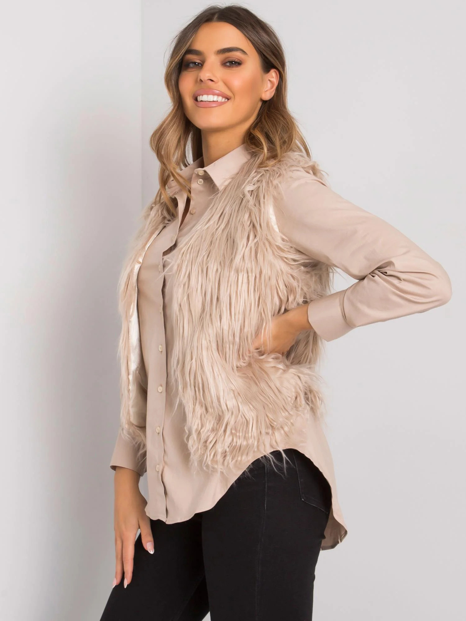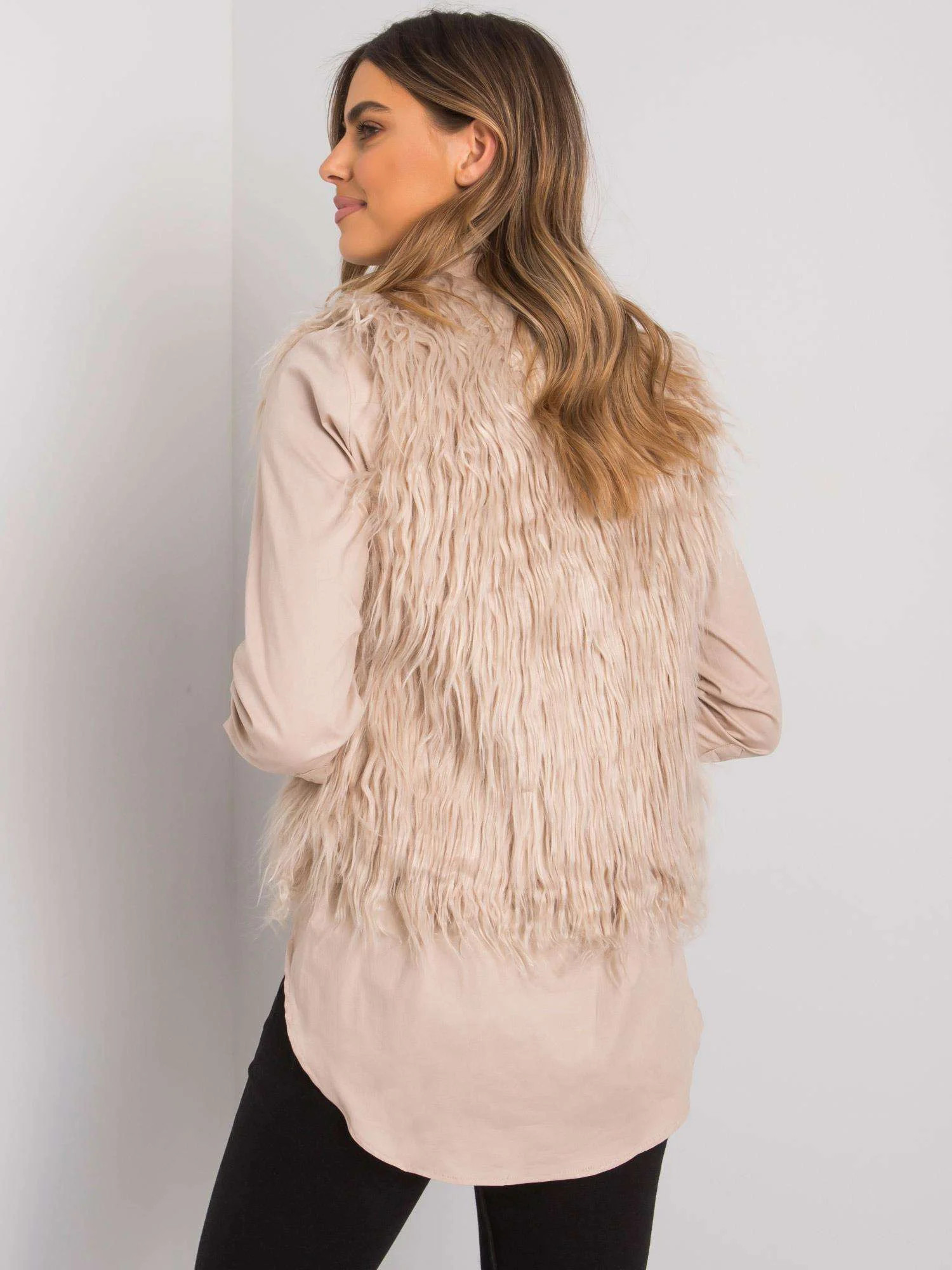 OCH BELLA Béžová kožešinová vesta.
