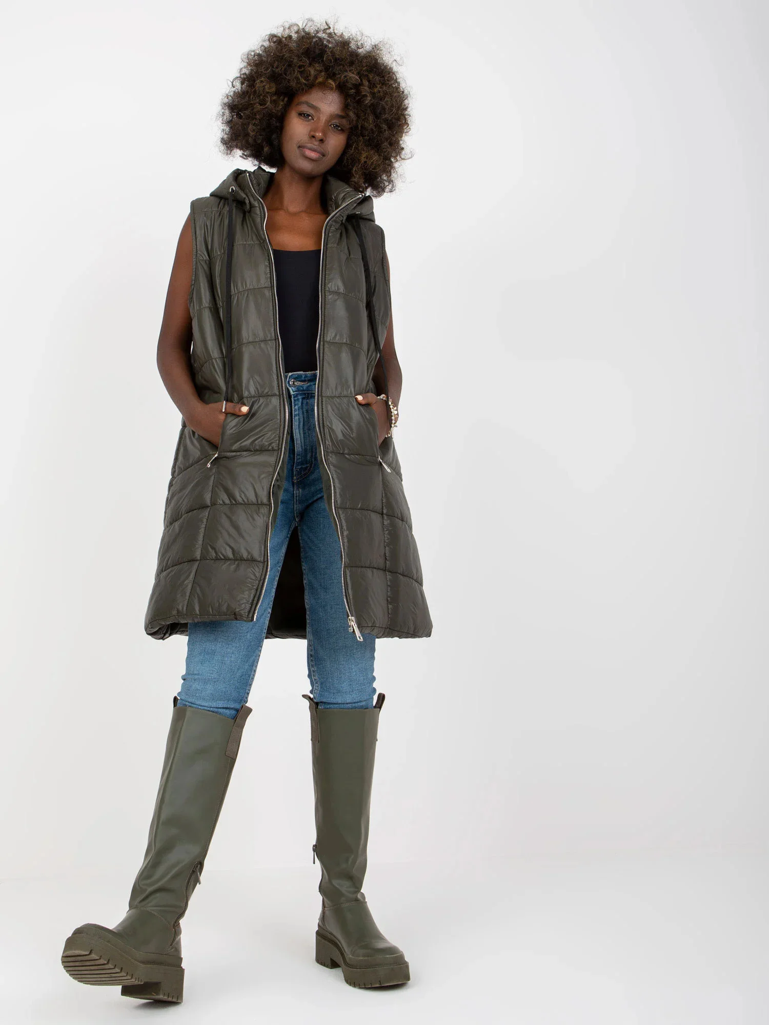 Rozměry vesty jedné velikosti měřené na plocho: šířka v podpaží - 52 cm, celková délka - 87 cm.EAN čárové kódy zboží jsou: