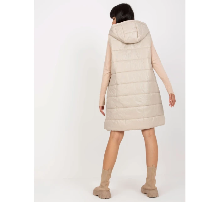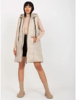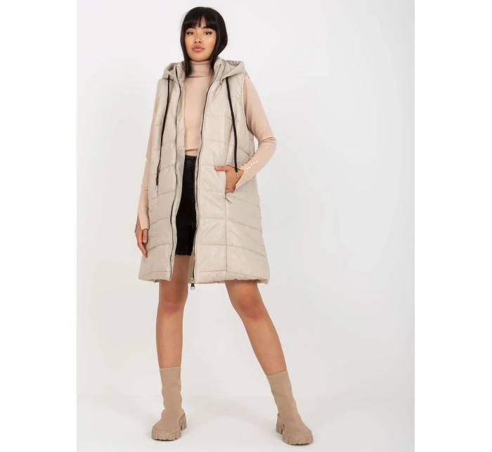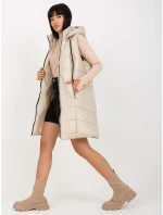 Bledě béžový dlouhý prošívaný péřový kabát s kapucí OCH BELLA .