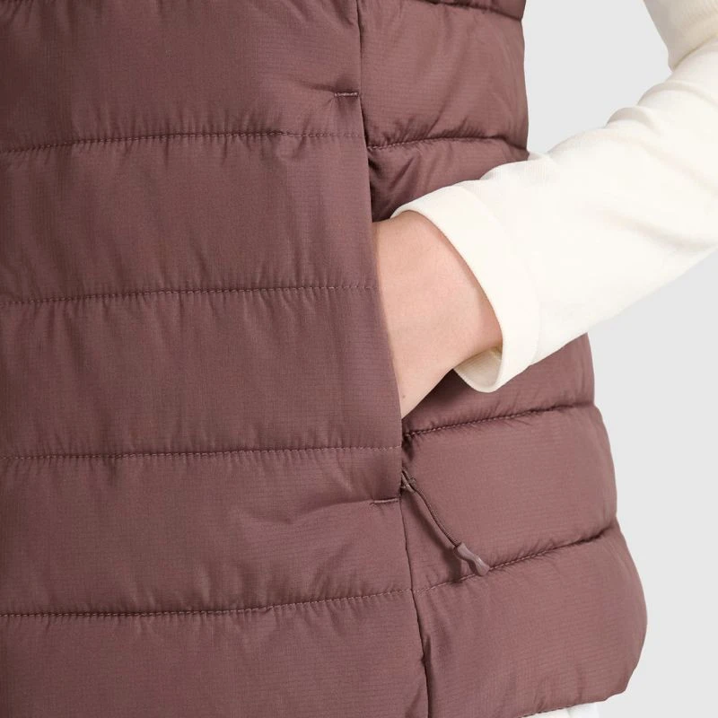 - Dámská péřová vesta bez rukávů ideální pro chladnější dny v přechodném období.