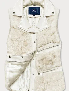 Krémová dámská vesta s kožíškem (BR9593-46)
