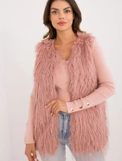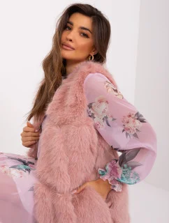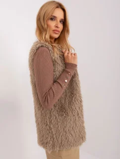 Tmavě béžová dámská vesta s kapucí kožešinou model 20698565 - J.STYLE