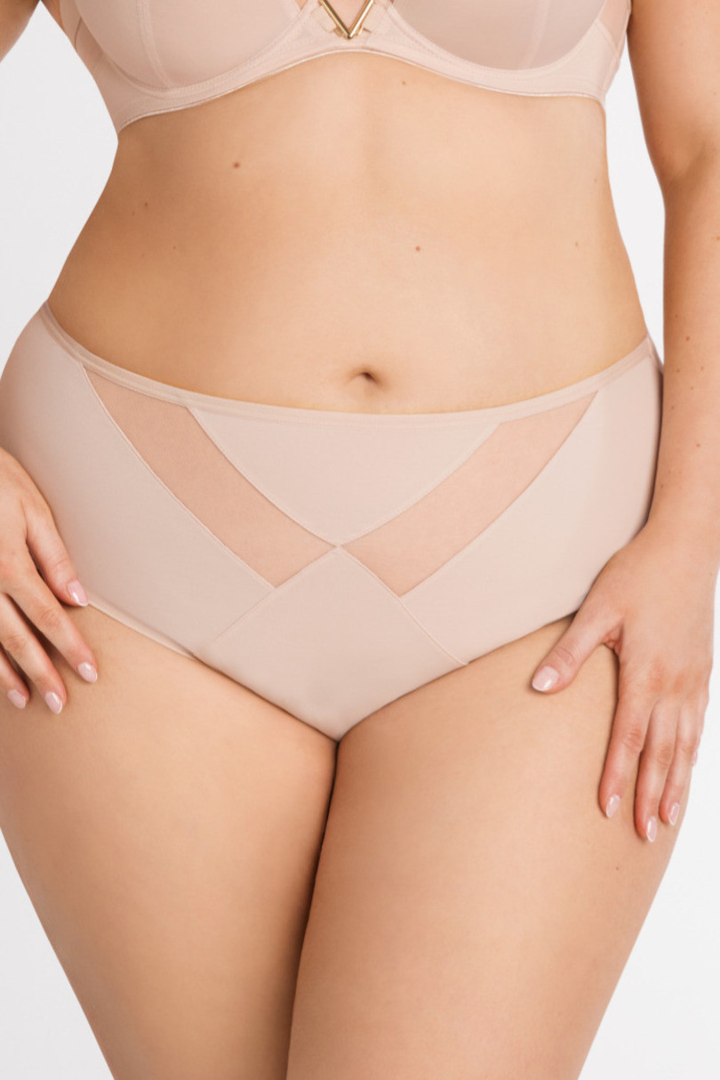 Nowoczesny charakter modelu podkreślają transparentne, tiulowe wstawki po bokach oraz z przodu, które optycznie wysmuklają sylwetkę i dodają lekkości. Bez względu na to, czy wybierasz je na co dzień, czy jako komplet z biustonoszem, zapewnią Ci komfort przez cały dzień i pewność siebie w każdej stylizacji.