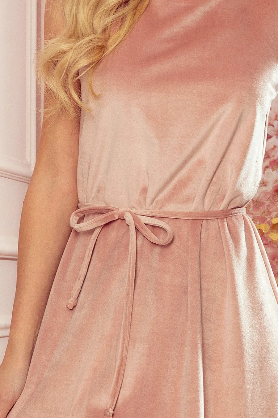 VICTORIA Dámské velurové trapézové šaty ve špinavě růžové barvě model 21371173 - numoco