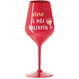 VÍNO JE MŮJ VALENTÝN - červená nerozbitná sklenice na víno 470 ml