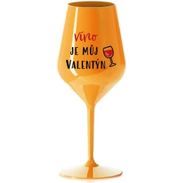 VÍNO JE MŮJ VALENTÝN - oranžová nerozbitná sklenice na víno 470 ml