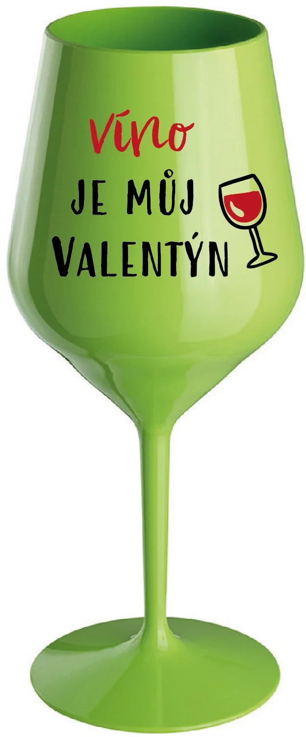 VÍNO JE MŮJ VALENTÝN - zelená nerozbitná sklenice na víno 470 ml