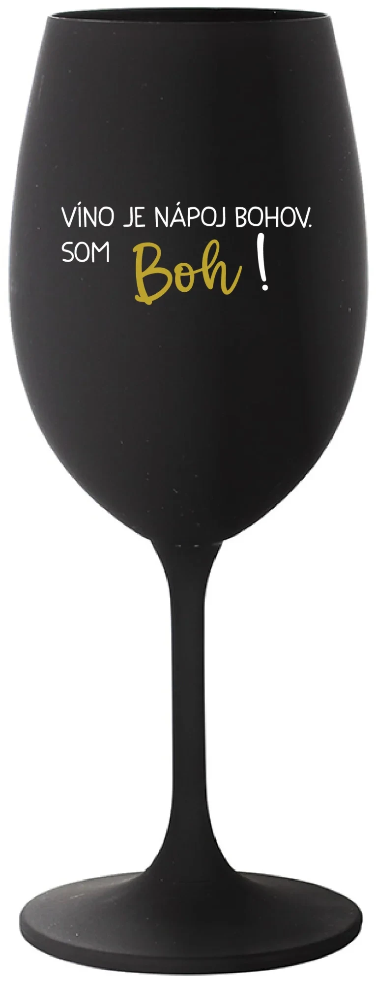 VÍNO JE NÁPOJ BOHOV. SOM BOH! - čierny pohár na víno 350 ml