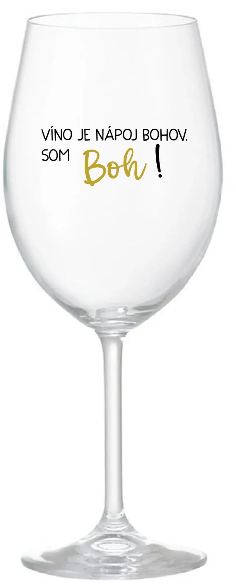 VÍNO JE NÁPOJ BOHOV. SOM BOH! - priehľadný pohár na víno 350 ml