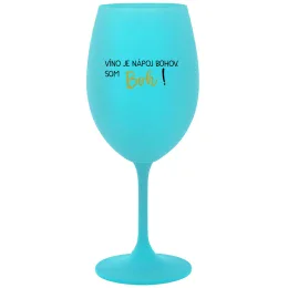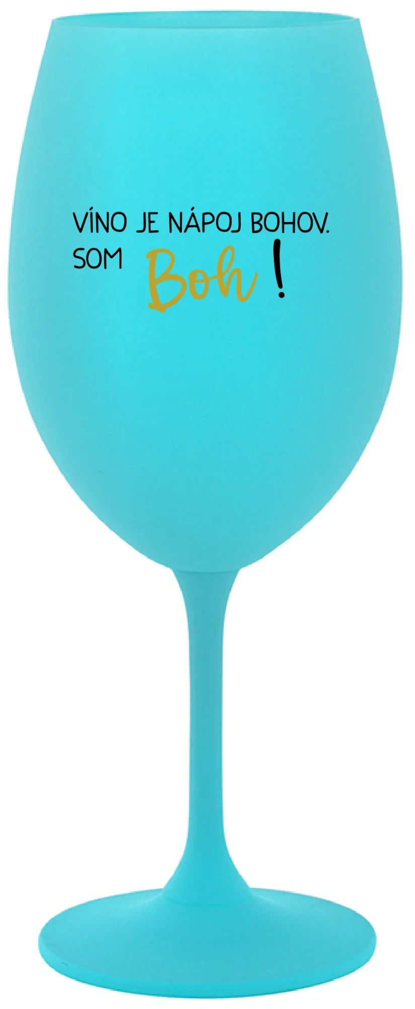 VÍNO JE NÁPOJ BOHOV. SOM BOH! - tyrkysový pohár na víno 350 ml