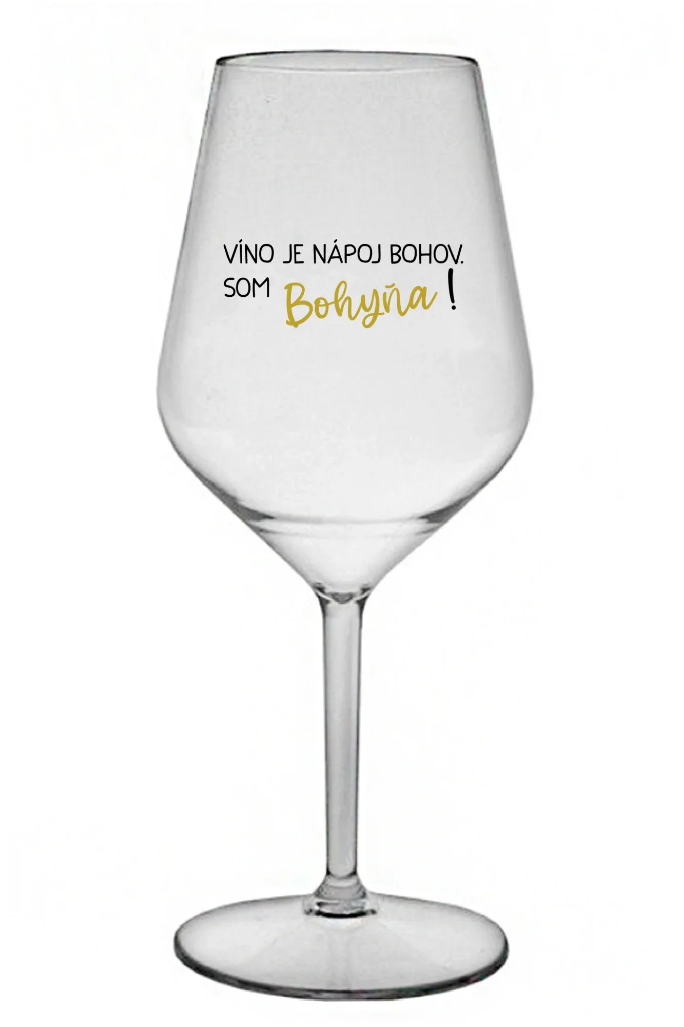 VÍNO JE NÁPOJ BOHOV. SOM BOHYŇA! - priehľadný nerozbitný pohár na víno 470 ml
