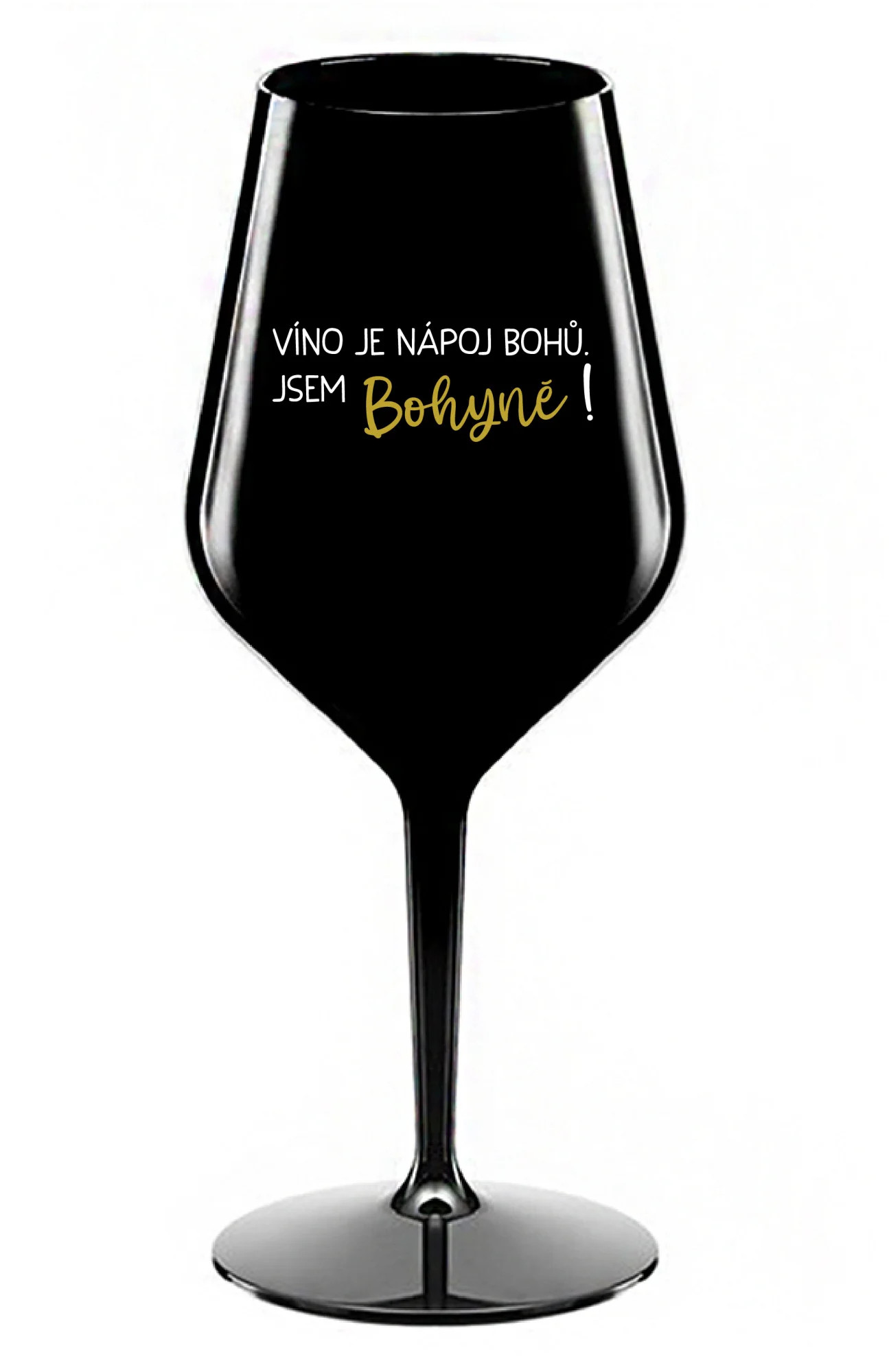 VÍNO JE NÁPOJ BOHŮ. JSEM BOHYNĚ! - černá nerozbitná sklenice na víno 470 ml