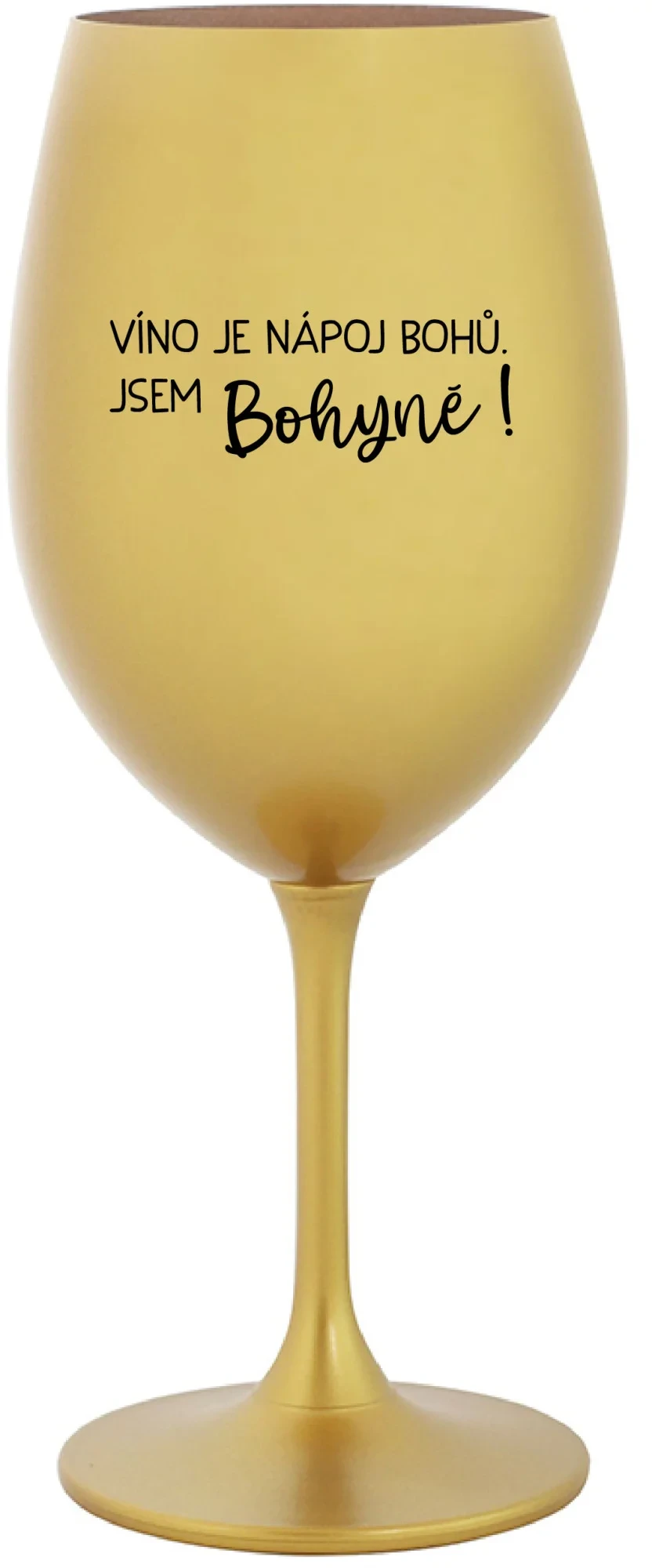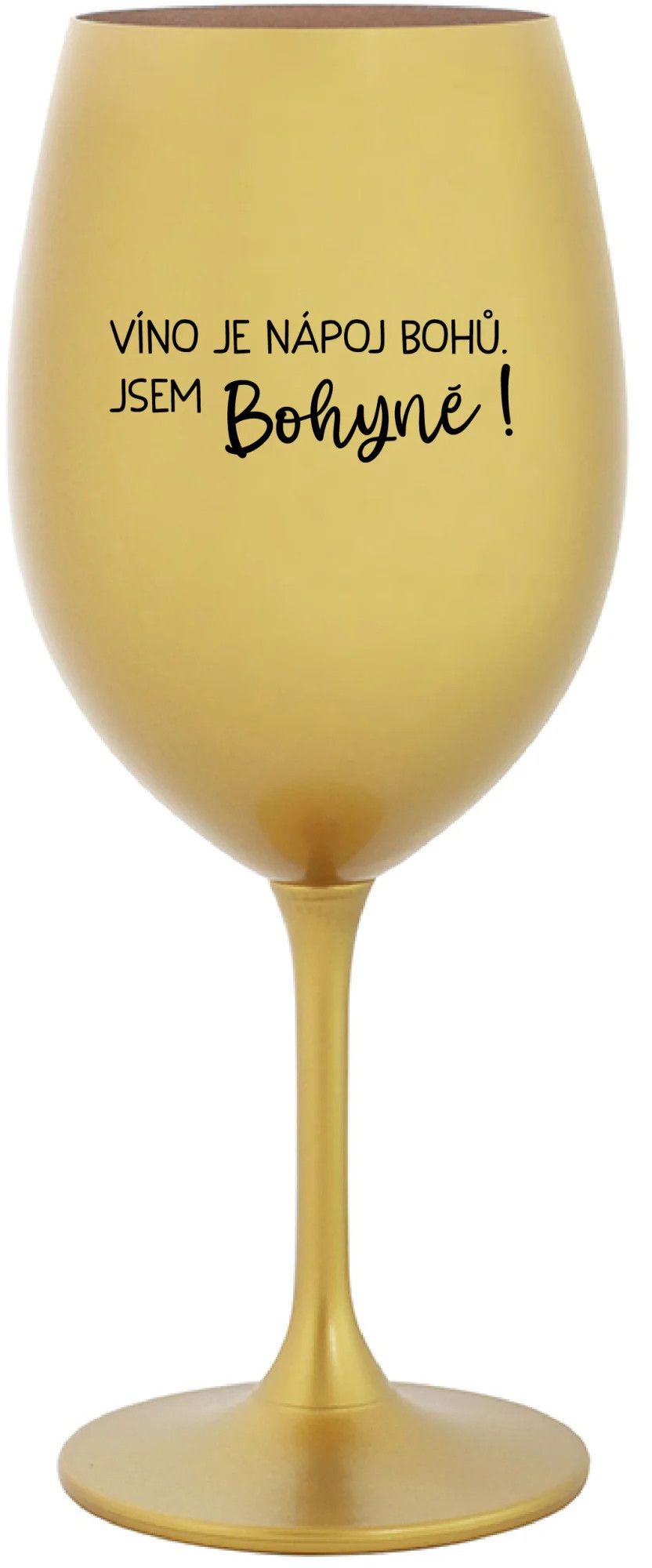 VÍNO JE NÁPOJ BOHŮ. JSEM BOHYNĚ! - zlatá sklenice na víno 350 ml