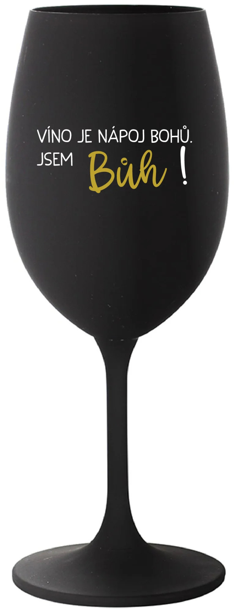 VÍNO JE NÁPOJ BOHŮ. JSEM BŮH! - černá sklenice na víno 350 ml