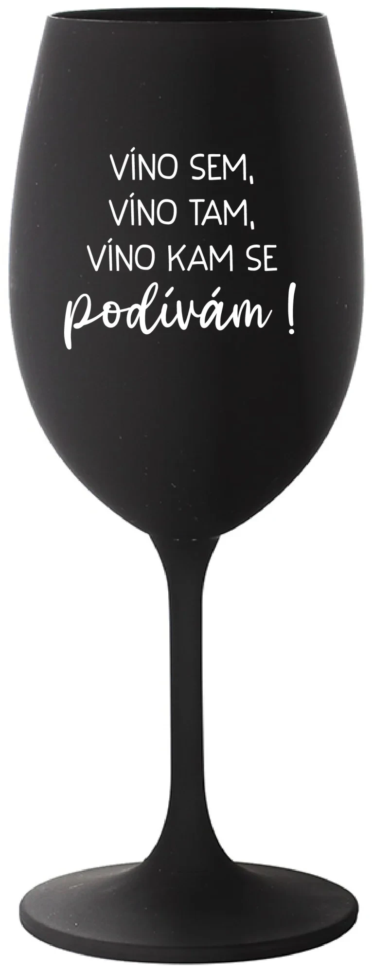 VÍNO SEM, VÍNO TAM, VÍNO KAM SE PODÍVÁM! - černá sklenice na víno 350 ml