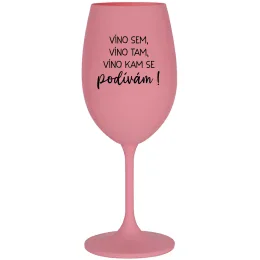 VÍNO SEM, VÍNO TAM, VÍNO KAM SE PODÍVÁM! - růžová sklenice na víno 350 ml