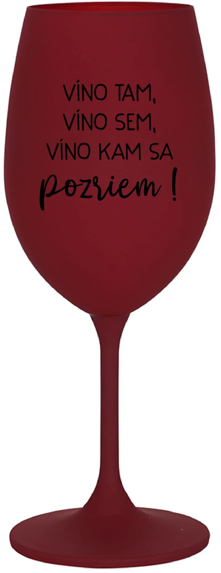 VÍNO TAM, VÍNO SEM, VÍNO KAM SA POZRIEM! - bordovy pohár na víno 350 ml