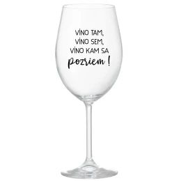 VÍNO TAM, VÍNO SEM, VÍNO KAM SA POZRIEM! - priehľadný pohár na víno 350 ml