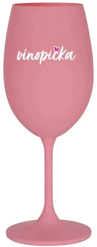 VÍNOPIČKA - růžová sklenice na víno 350 ml (bílý text)