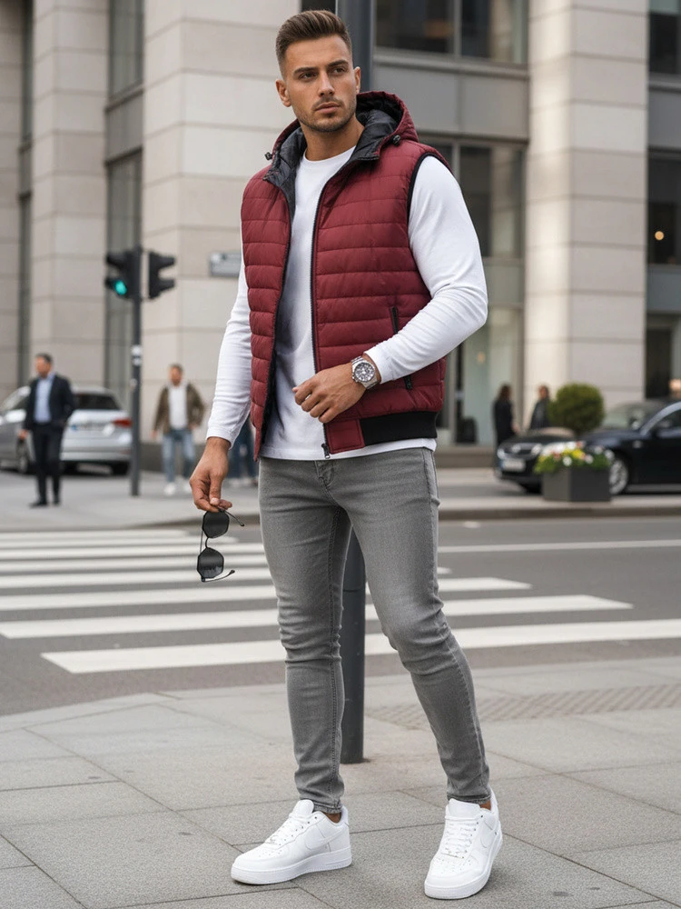 Vínová pánská vesta FashionStreet TX4238