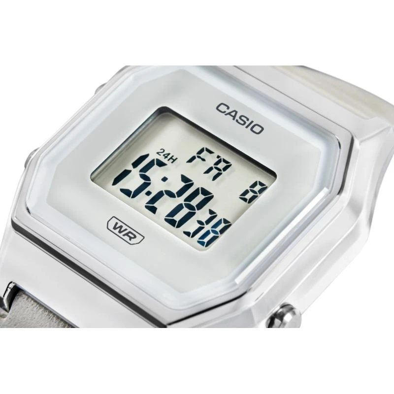 Casio LA680WEL-8EF – dla tych kobiet, które lubią jasne, pastelowe dodatki i srebrny błysk ukryty w codziennych detalach.