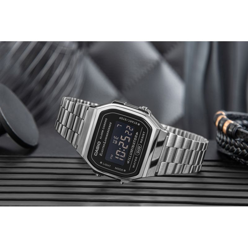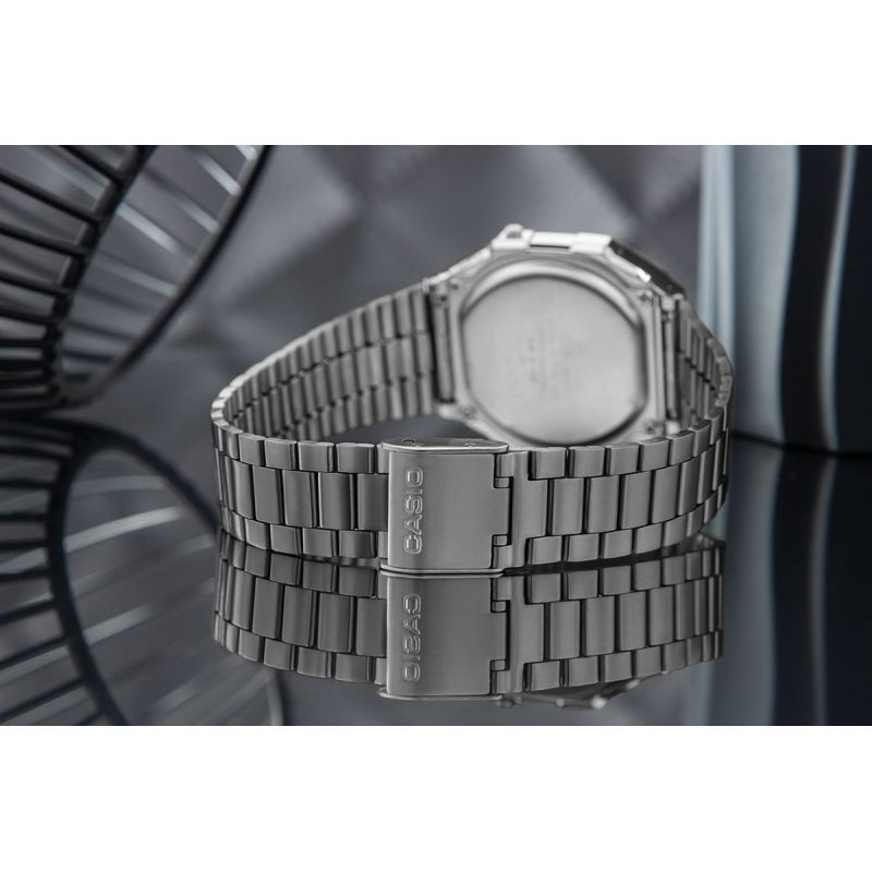 Náramek je vyroben z vysoce kvalitní nerezové oceli, která zajišťuje odolnost a celodenní pohodlí, a jeho klasický design dokonale ladí s vintage atmosférou, zatímco jemná kartáčovaná povrchová úprava dodává hodinkám nadčasový vzhled. Logo Casio na sponě.