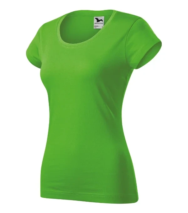 lehce vypasovaný střih s bočními švy hlubší kulatý výstřih úzký lem průkrčníku z vrchového materiálu s 5 % elastanu vnitřní část průkrčníku začištěna páskou z vrchového materiálu zpevnění ramenních švů páskou rukávy kratší délky silikonová úprava