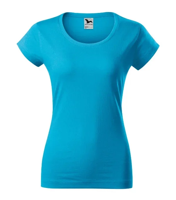 lehce vypasovaný střih s bočními švy hlubší kulatý výstřih úzký lem průkrčníku z vrchového materiálu s 5 % elastanu vnitřní část průkrčníku začištěna páskou z vrchového materiálu zpevnění ramenních švů páskou rukávy kratší délky silikonová úprava