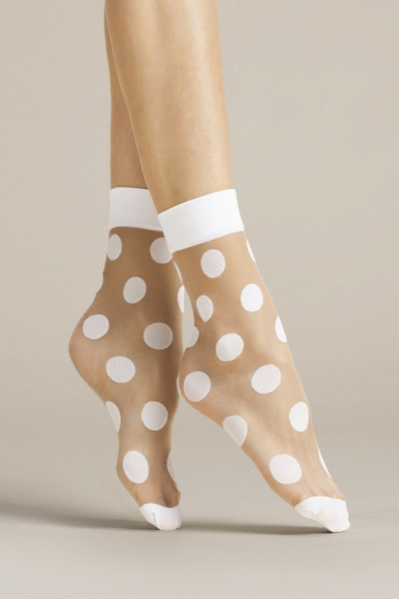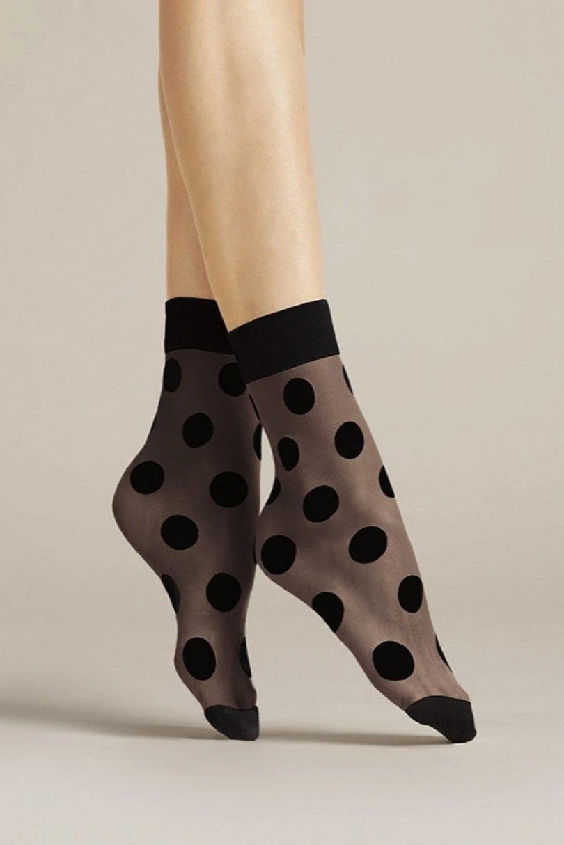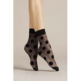 Ponožky VIRGINIA 20 DEN značky Fiore jsou stylovým doplňkem pro ženy, které rády kombinují eleganci s módním nádechem. 20 DEN silné průhledné struktury jemně zvýrazňuje vzhled chodidla a výrazný vzor v klasickém hráškovém provedení dodává celku nadčasový charakter. Díky vysoce kvalitní směsi polypropylenu, polyamidu a elastanu jsou ponožky lehké, pružné a odolné. Dokonale se přizpůsobí chodidlu a zajišťují pohodlí při nošení po celý den. Jemný lem udržuje ponožky na místě bez tlaku, což zvyšuje komfort při používání. Model VIRGINIA je ideální pro každodenní styling i jako jemný módní akcent k elegantnějším soupravám. Je ideální volbou pro ženy, které chtějí dodat svému stylingu lehkost a originalitu.